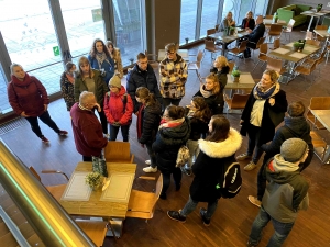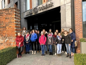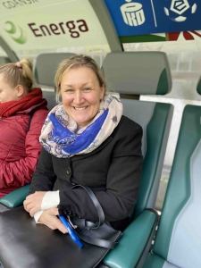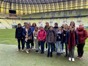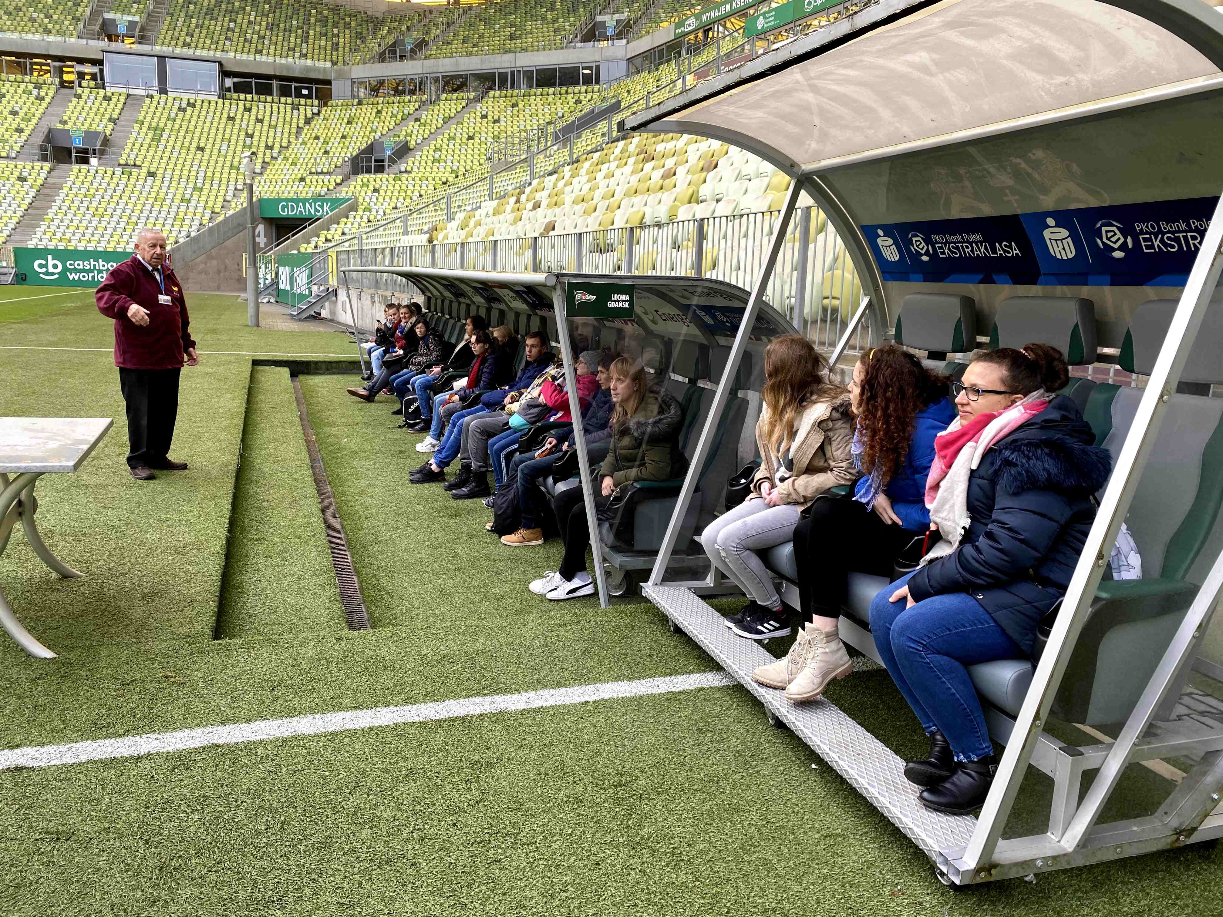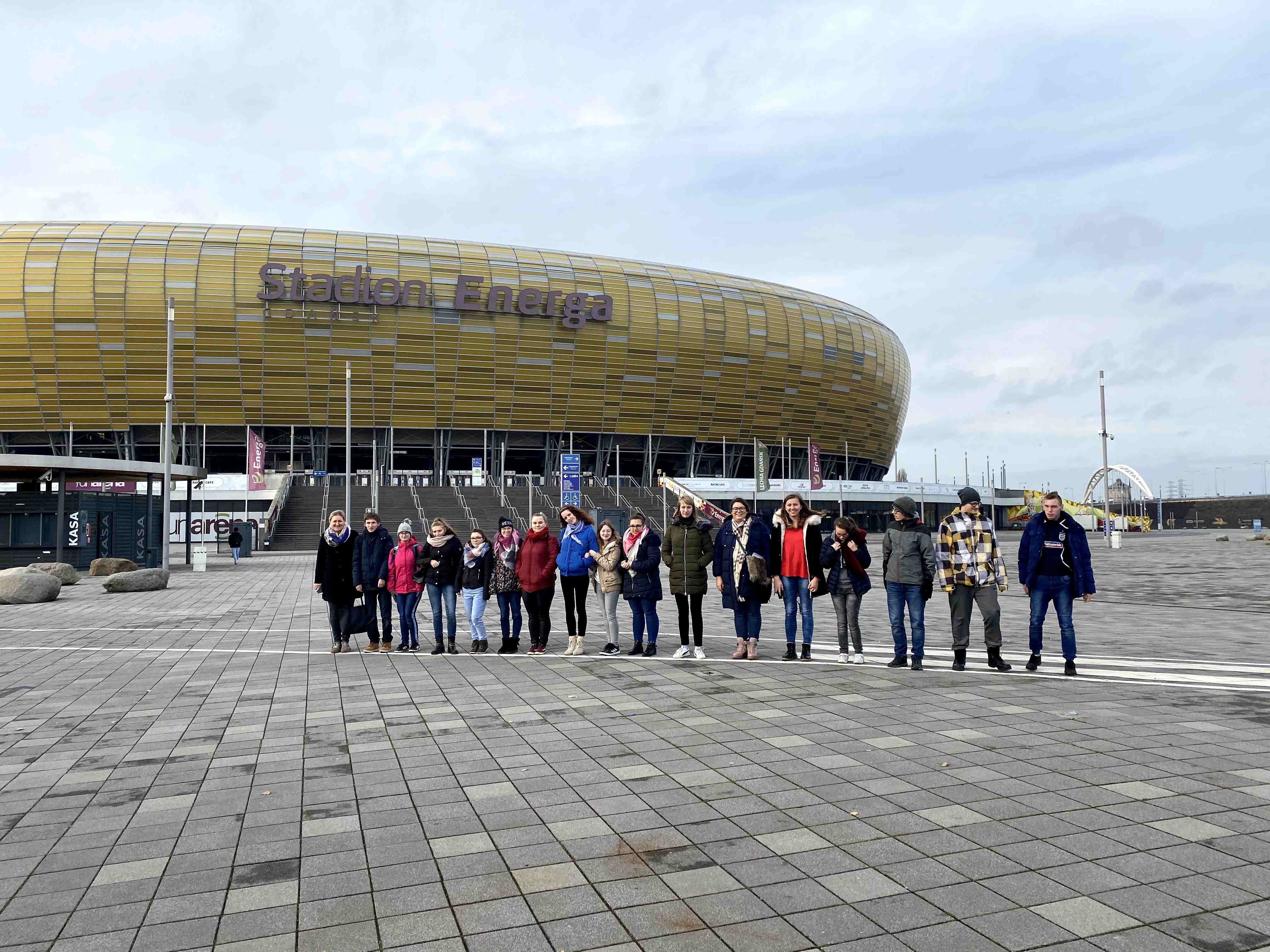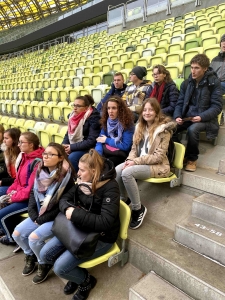 28 listopada 2019 zanim jeszcze na dobre nie zatraciliśmy się w przygotowaniach świątecznych udało nam się wraz z uczniami odwiedzić już po raz czwarty Hotel Hilton w Gdańsku. Przepięknie usytuowany nad rzeką Motławą w Gdańsku, w pobliżu Filharmonii Bałtyckiej i wszystkich atrakcji turystycznych starego miasta. Jak zawsze przywitała nas Pani Ania Huk, która z olbrzymią pasją opowiada o swoim pracodawcy. W hotelu udało nam się zobaczyć salę konferencyjną – gdzie każdy mógł poczuć się jak prawdziwy gość. Każdy mógł napić się kawy, czy herbaty i zjeść przepyszne ciastko. Przejście przez hotel pozwoliło nam obejrzeć jednostki mieszkalne z widokiem na rzekę, które robią ogromne wrażenie na wszystkich. Z hotelu autokarem udaliśmy się pod Stadion Energa w Gdańsku. Pan przewodnik pokazał nam każdy zakamarek stadionu zaczynając od kaplicy w której wszyscy piłkarze odwiedzający obiekt mogą się pomodlić przed meczem, przez flagi z autografami drużny FC Barcelona, aż do murawy.
