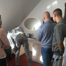 Pierwsza tegoroczna wycieczka instruktażowa odbyła się do Hotelu Victoria w Bolszewie. Po raz trzeci hotel przyjął uczniów z naszej placówki bardzo serdecznie.Młodzież z I klasy Branżowej Szkoły I stopnia po obiekcie oprowadzała Pani Agnieszka. Uczniowie rozpoczęli zwiedzanie od recepcji, przez restaurację, kuchnię, sale konferencyjne, część rekreacyjną (basen, bowling, gabinety masażu itp.), po przestronne pokoje hotelowe. Największe zainteresowanie wzbudził apartament, w którym młodzież mogła zaobserwować wyposażenie jednostki mieszkalnej jak i węzła higieniczno-sanitarnego z wszelkimi udogodnieniami jednostki apartamentowej tj. minibarek, lodówka, dwie łazienki. Każdy mógł wczuć się w rolę pracownika hotelu dzięki między innymi: obsłudze wózka do transportu bagażu.Uczniowie pokazali swoje zainteresowanie pracą w obsłudze hotelowej. Zadawali mnóstwo pytań, na które pracownicy hotelu chętnie odpowiadali. Z pewnością uczniowie naszego ośrodka jeszcze nie raz chętnie odwiedzą ten obiekt.
