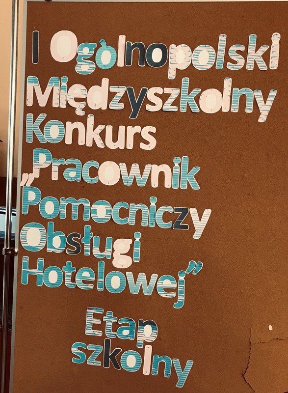 W piątek 11 stycznia 2019 roku w naszej placówce po raz pierwszy uczniowie mieli przyjemność przystąpić do etapu szkolnego I OGÓLNOPOLSKIEGO MIĘDZYSZKOLNEGO KONKURSU „Pracownik Pomocniczy Obsługi Hotelowej”. Do eliminacji przystąpiły dwie klasy szkoły branżowej. Etap szkolny polegał na rozwiązaniu testu składającego się z 30 pytań zamkniętych. Zwycięzca wybierze się na etap międzyszkolny do Kołobrzegu aż na 4 dni. Liczymy na wysokie wyniki! 🙂
