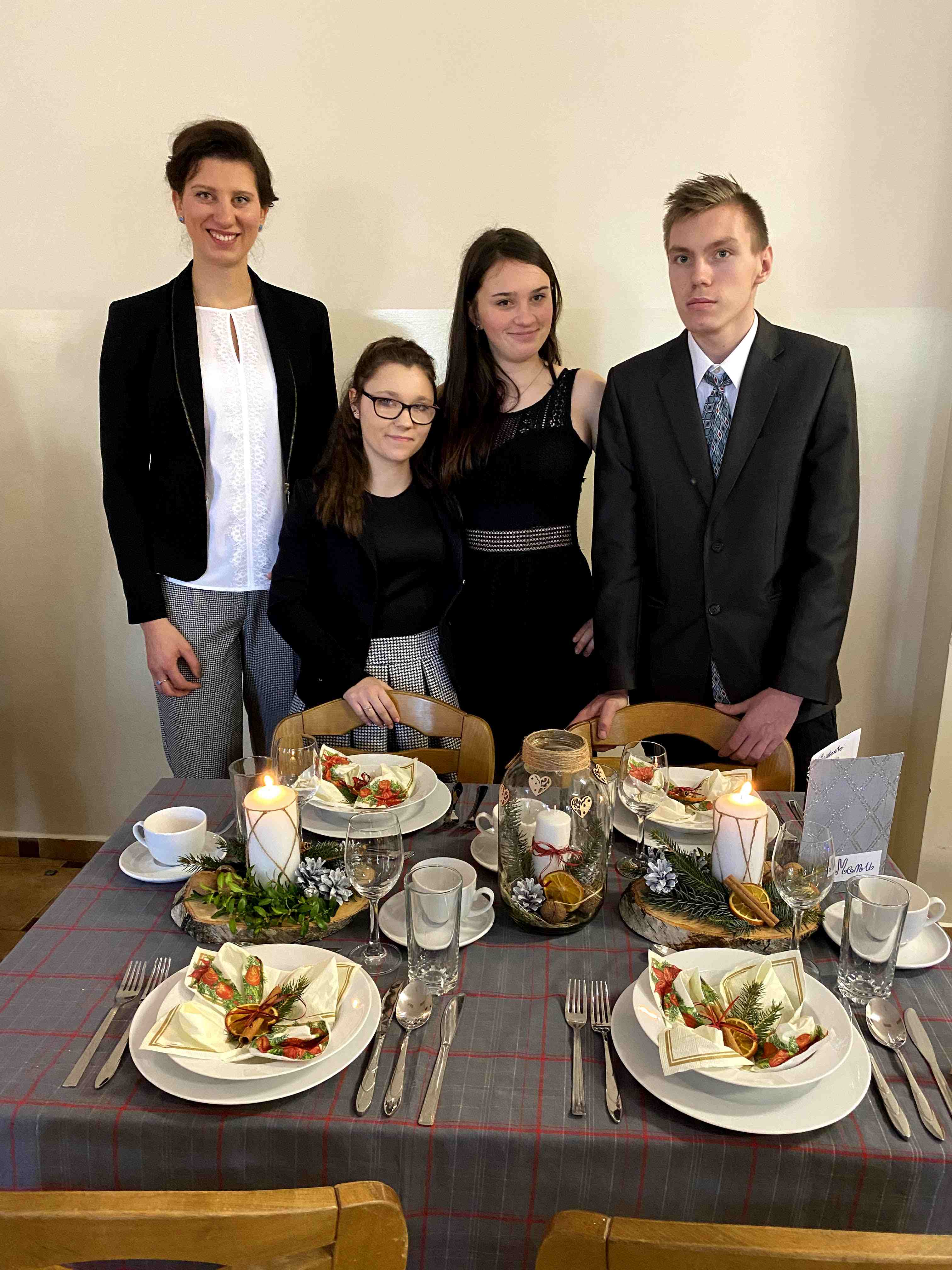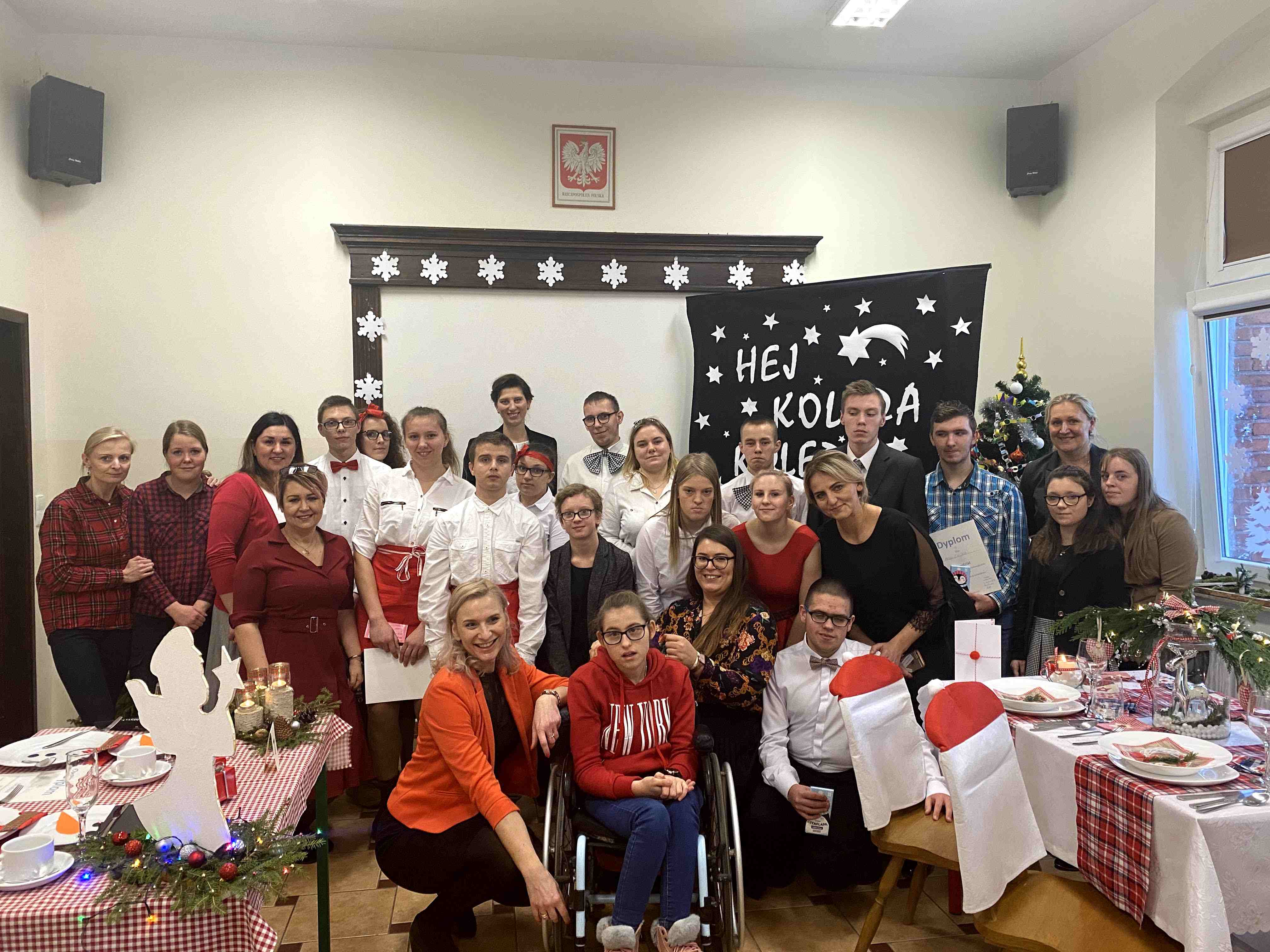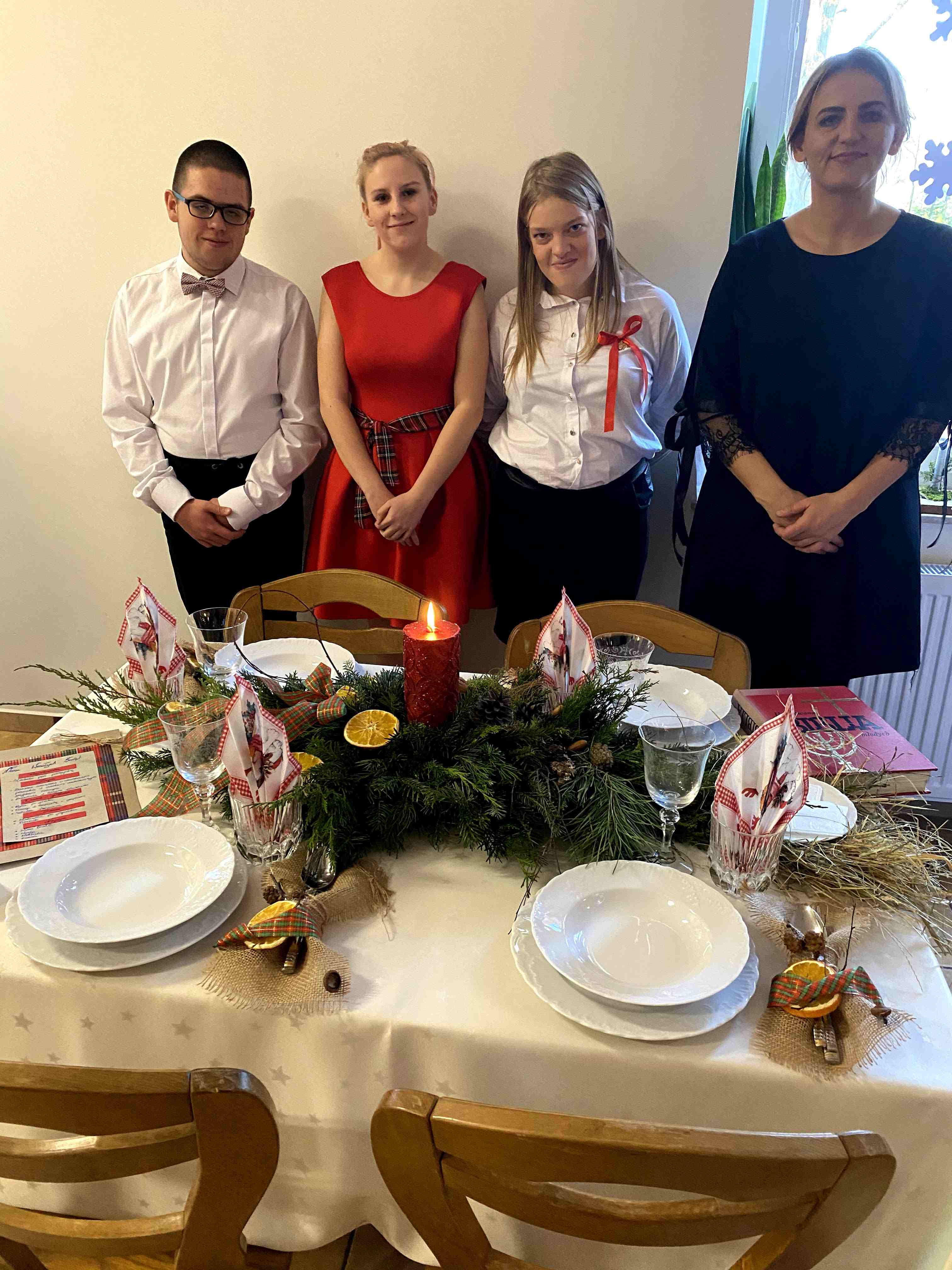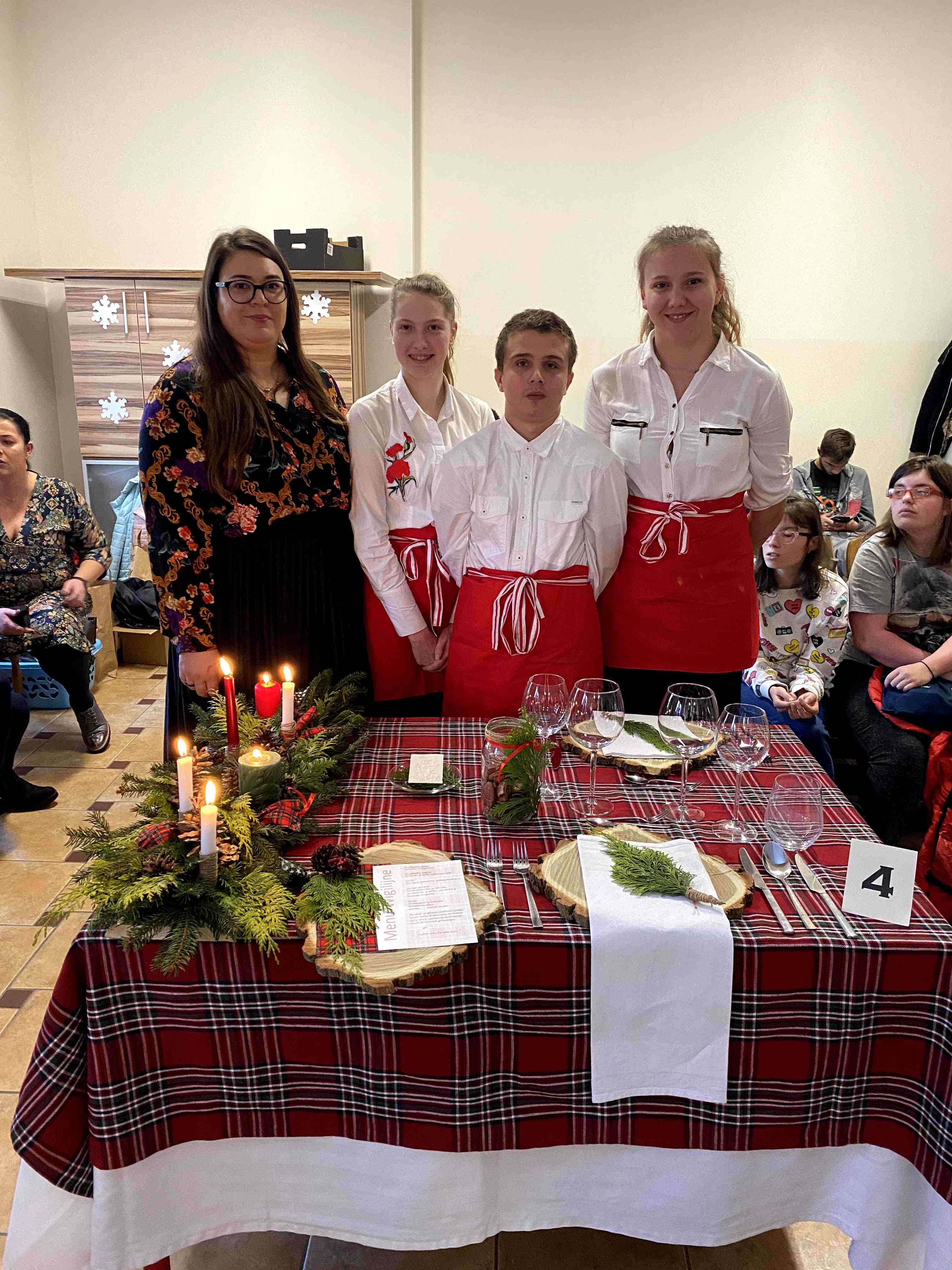 W świątecznej atmosferze uczniowie klas kucharskich i hotelarskich rywalizowali ze sobą w szkolnym konkursie na dekorację stołu. Ich zadaniem było zaaranżowanie stołu na wigilijną wieczerzę „Świąteczną kratą nastrój narysujmy…”