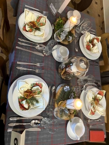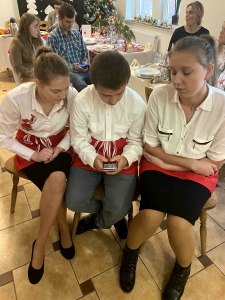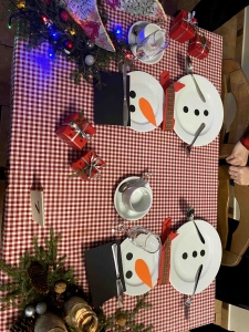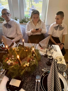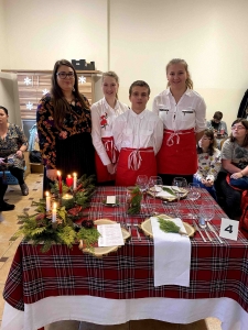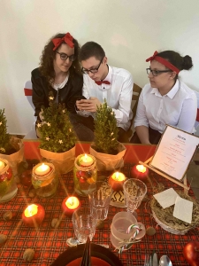 W świątecznej atmosferze uczniowie klas kucharskich i hotelarskich rywalizowali ze sobą w szkolnym konkursie na dekorację stołu. Ich zadaniem było zaaranżowanie stołu na wigilijną wieczerzę „Świąteczną kratą nastrój narysujmy…”