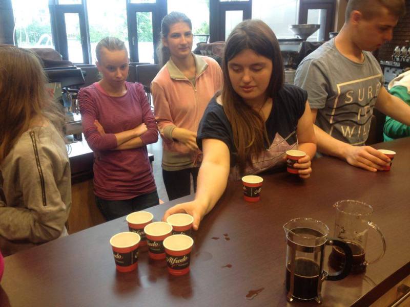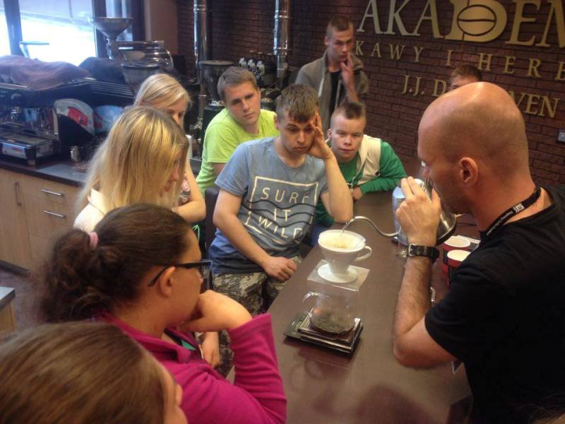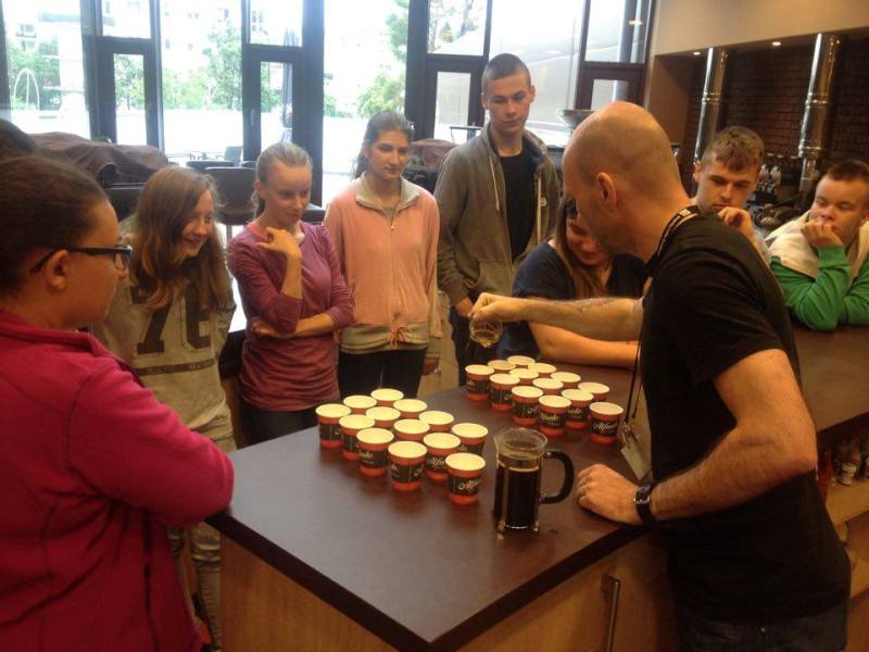 Dnia 12 czerwca grupa uczniów z ZSZ wraz z p. Magdalena Jeka i p. Agnieszką Papke wybrała się na wycieczkę do firmy J.J Darboven w Rumi. Doskonałe mieszanki najwyższej jakości kaw, starannie wyselekcjonowane herbaty, unikatowe czekolady pitne, wiedza i kunszt przygotowujących osób pracujących wyłącznie na profesjonalnych maszynach to przepis na filiżankę wybornego gorącego napoju. Z tych właśnie dobrodziejstw mogli skorzystać nasi uczniowie. Pracownik firmy, Pan Dariusz przygotował prezentację, w której przedstawił wszystkim historię kawy, jej uprawę oraz rodzaje. Następnie wypalił ziarna kawy, pokazując poszczególne etapy tego procesu. Na zakończenie poczęstował uczestników wycieczki kawą zaparzoną na pięć różnych sposobów. Było pysznie i aromatycznie:)