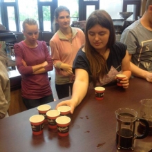 Dnia 12 czerwca grupa uczniów z ZSZ wraz z p. Magdalena Jeka i p. Agnieszką Papke wybrała się na wycieczkę do firmy J.J Darboven w Rumi. Doskonałe mieszanki najwyższej jakości kaw, starannie wyselekcjonowane herbaty, unikatowe czekolady pitne, wiedza i kunszt przygotowujących osób pracujących wyłącznie na profesjonalnych maszynach to przepis na filiżankę wybornego gorącego napoju. Z tych właśnie dobrodziejstw mogli skorzystać nasi uczniowie. Pracownik firmy, Pan Dariusz przygotował prezentację, w której przedstawił wszystkim historię kawy, jej uprawę oraz rodzaje. Następnie wypalił ziarna kawy, pokazując poszczególne etapy tego procesu. Na zakończenie poczęstował uczestników wycieczki kawą zaparzoną na pięć różnych sposobów. Było pysznie i aromatycznie:)