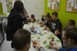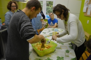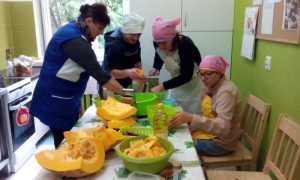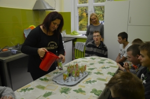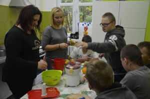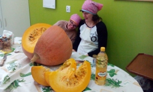 Hitem ostatnich tygodni została poczciwa kaszubska bania czyli dynia. Wielką dynie wyhodowała na swojej działce pedagog Hanna Kazimierczuk. Dzięki dobremu sercu pani Hani dynia niczym złota kareta z baśni o Kopciuszku wjechała do naszej szkolnej kuchenki. Kilkudziesięciokilogramowy olbrzym wyzwolił w nas ukryte talenty kulinarne. Powstały dyniowe racuchy, ciasto, zupa na słodko i ostro, puree dyniowe i inne rarytasy. Dynia, dynia, wszędzie dynia.
