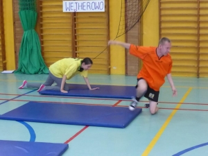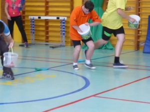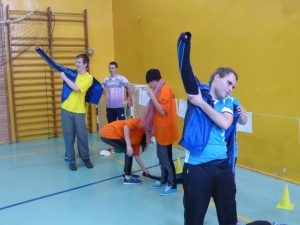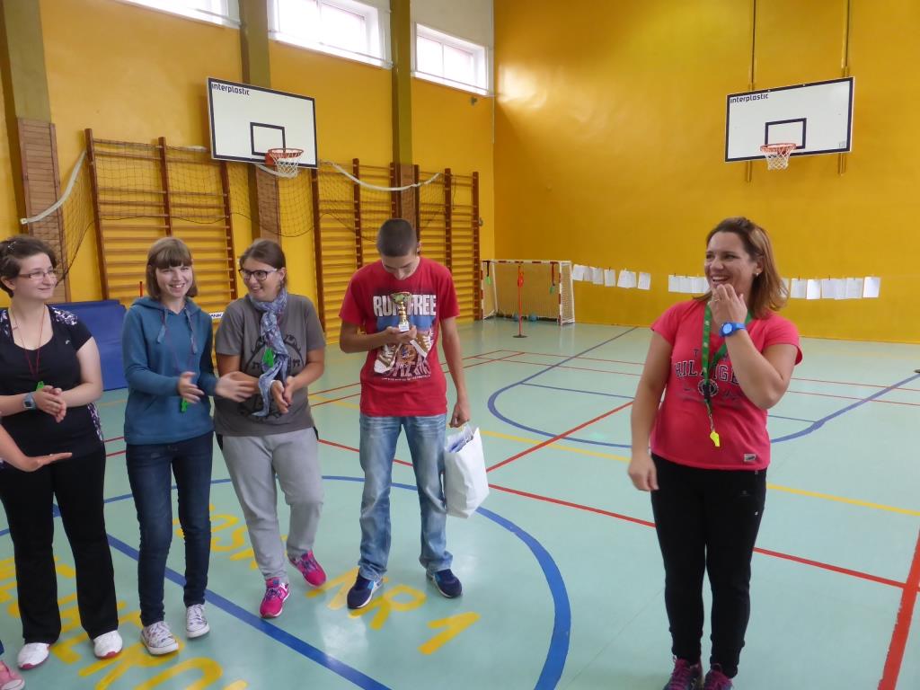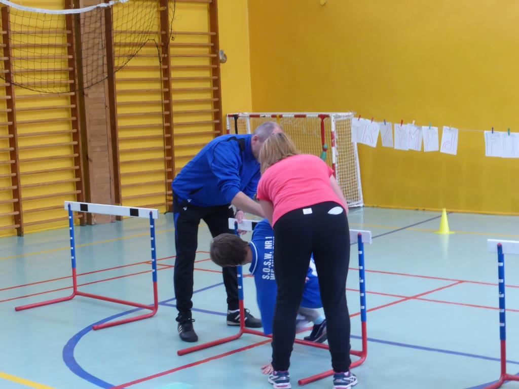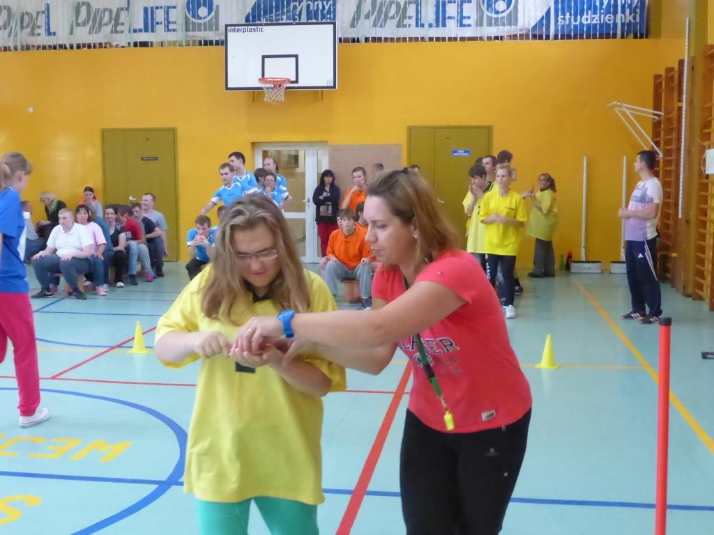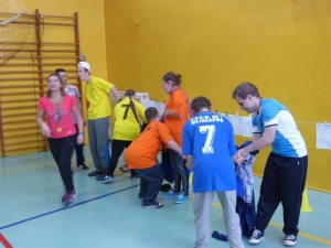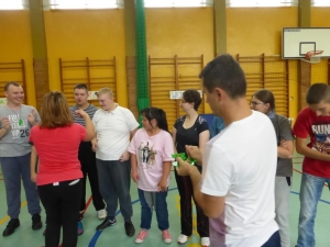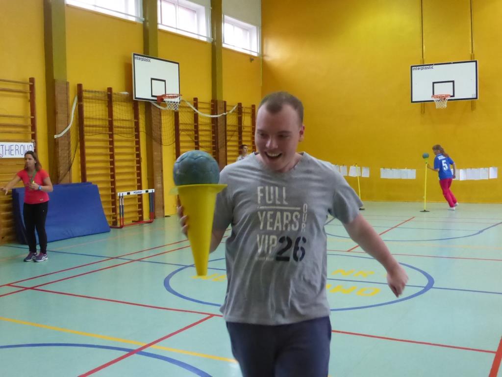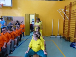 W tym roku gościliśmy uczniów ze Szkoły Przysposabiającej do Pracy nr 1 z Gdyni oraz ucznia i uczennicę ze Szkoły Przysposabiającej do Pracy z naszej placówki w Rumi. Rozgrywki sportowe odbywały się pod hasłem „TRZYMAJ FORMĘ KAŻDEGO DNIA”. Treści i zadania zawarte w konkurencjach nawiązywały tematyką do programu profilaktyki „Trzymaj Formę”. Uczniowie wykazali się dużą sprawnością, szybkością działania i zespołowym hartem ducha. Wspierali się nawzajem i swoim zachowaniem budowali wspaniałą atmosferę zdrowej rywalizacji sportowej. Na koniec wszyscy zostali obdarowani pamiątkowymi medalami, upominkami, dyplomem drużynowym oraz pucharem.