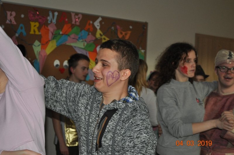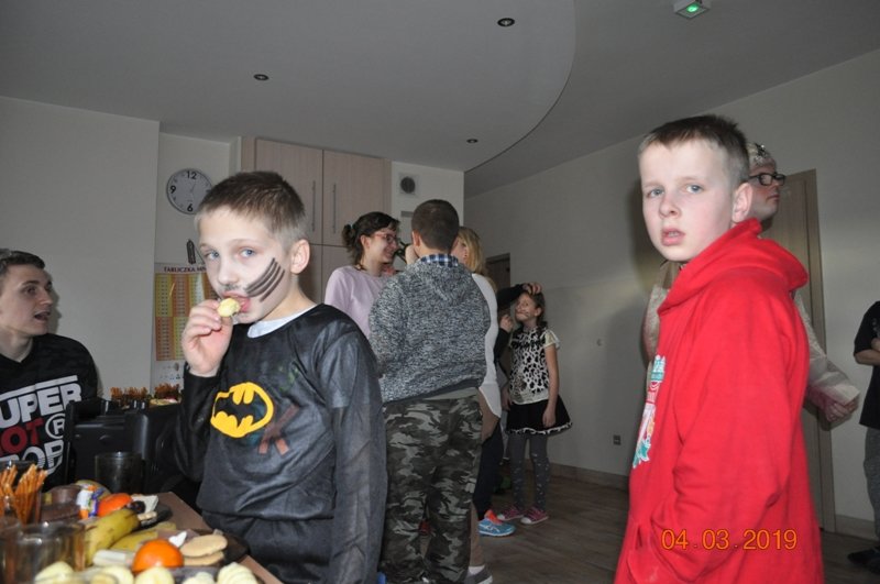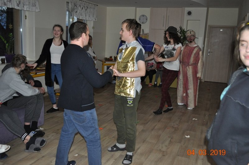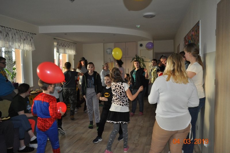 Jak co roku tradycyjnie, w Grupach Wychowawczych odbyła się zabawa karnawałowa. Niestety zaprzyjaźniona świetlica środowiskowa, która gościła corocznie nie dotarła do nas z powodu ulewy, która ich zmoczyła. I ze smutkiem musieli wrócić.