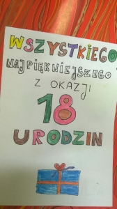Uczniowie naszej szkoły zaangażowali się w akcję „Kartka dla Dominika”. Wraz z nauczycielami wykonali dużą ilość kartek urodzinowych dla chłopca chorego na raka, z okazji Jego 18 urodzin. Życzenia zostały wysłane do domu Dominika. Mamy nadzieję,że dzięki nim chociaż na chwilę chłopiec będzie mógł zapomnieć o bólu i cieszyć się, że ma tak wielkie wsparcie.