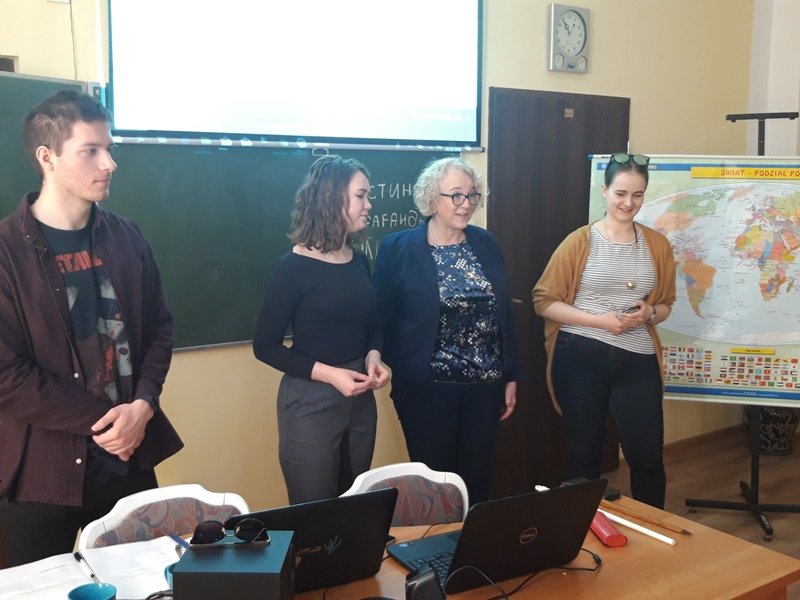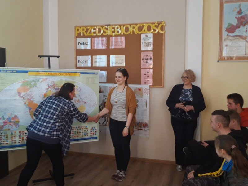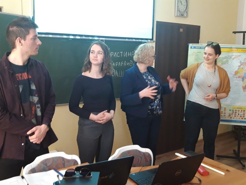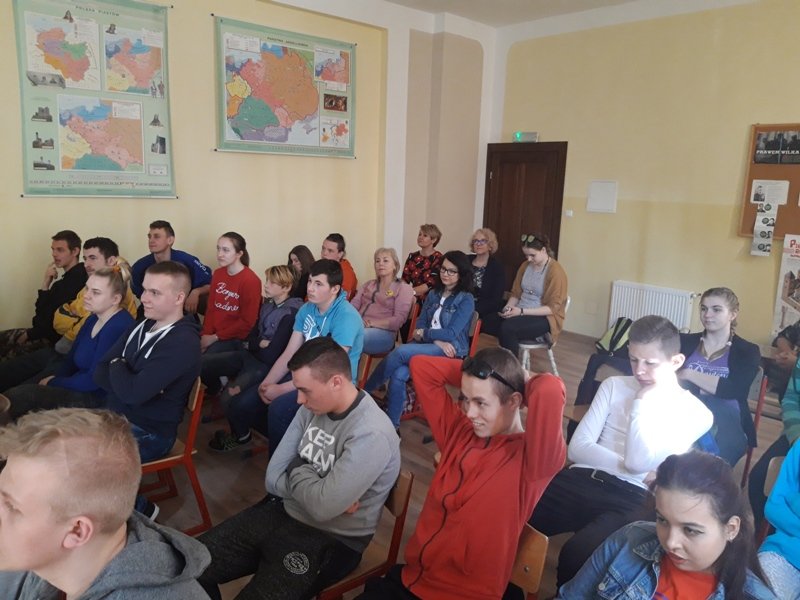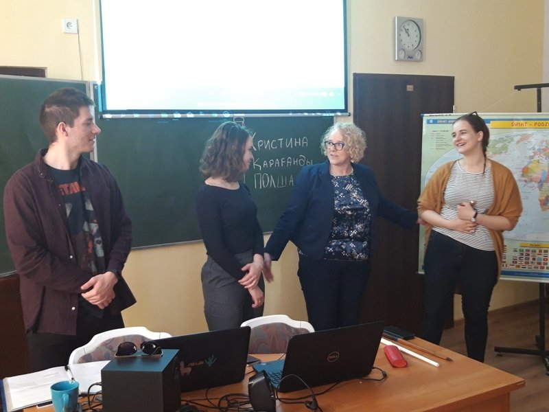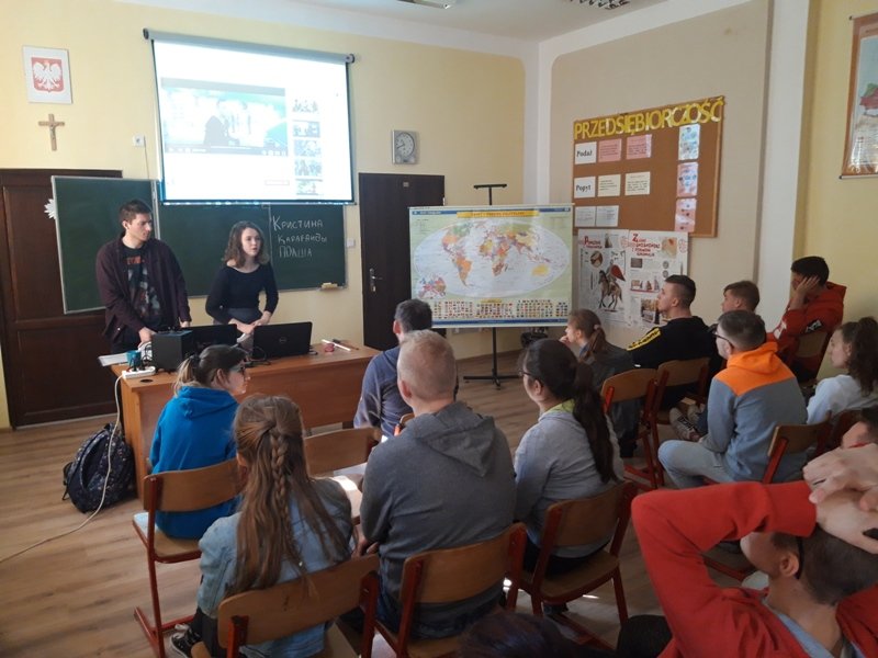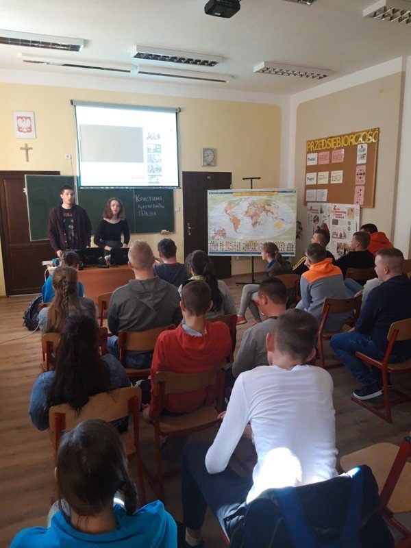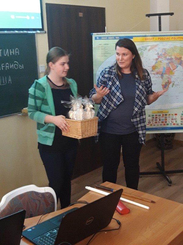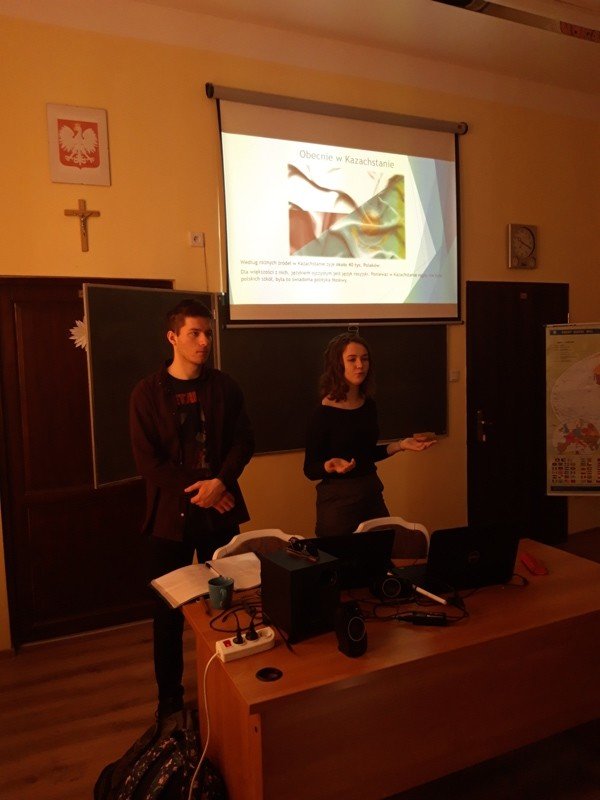 Nasi wyjątkowi goście to właśnie potomkowie Polaków, których sowieci wysiedlili z terenów obecnej Ukrainy. Kristina Mak przyjechała do Polski z miejscowości Karaganda. Na co dzień studiuje wiedzę o teatrze na Uniwersytecie Gdańskim. Maksym Kuberski jest studentem turystyki i rekreacji na Akademii Wychowania Fizycznego w Gdańsku. Dzięki piątkowemu spotkaniu uczniowie klas 1c, 2a, 2b, 3b szkoły branżowej oraz uczniowie klasy VII b szkoły podstawowej mogli poznać Kazachstan od przysłowiowej podszewki. Rozmawialiśmy o dziedzictwie i różnorodności kulturowej Kazachów, tradycjach, historii oraz o tym, co najnowsze. Były dużo pytań oraz masa wyczerpujących odpowiedzi. Okazało się, że mamy coś wspólnego 🙂 . Piosenkę, która prawdopodobnie została bardzo, bardzo dawno temu zapożyczona z języka polskiego! Tylko u nas w Ośrodku „dzieweczka szła do laseczka” podrygując w rytmie dwujęzycznego, bliskiego naszym sercom utworu.