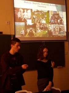 Nasi wyjątkowi goście to właśnie potomkowie Polaków, których sowieci wysiedlili z terenów obecnej Ukrainy. Kristina Mak przyjechała do Polski z miejscowości Karaganda. Na co dzień studiuje wiedzę o teatrze na Uniwersytecie Gdańskim. Maksym Kuberski jest studentem turystyki i rekreacji na Akademii Wychowania Fizycznego w Gdańsku. Dzięki piątkowemu spotkaniu uczniowie klas 1c, 2a, 2b, 3b szkoły branżowej oraz uczniowie klasy VII b szkoły podstawowej mogli poznać Kazachstan od przysłowiowej podszewki. Rozmawialiśmy o dziedzictwie i różnorodności kulturowej Kazachów, tradycjach, historii oraz o tym, co najnowsze. Były dużo pytań oraz masa wyczerpujących odpowiedzi. Okazało się, że mamy coś wspólnego 🙂 . Piosenkę, która prawdopodobnie została bardzo, bardzo dawno temu zapożyczona z języka polskiego! Tylko u nas w Ośrodku „dzieweczka szła do laseczka” podrygując w rytmie dwujęzycznego, bliskiego naszym sercom utworu.