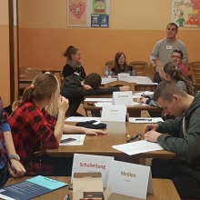 9 listopada zespół uczniów realizujących projekt „Deutsch hat klasse” uczestniczył w zajęciach z lektorem Goethe Institut Warszawa. W ramach spotkania pani Monika Langowska przygotowała dla nas grę symulacyjną.