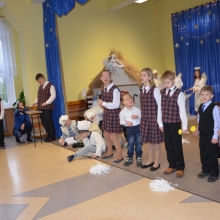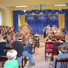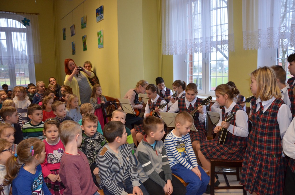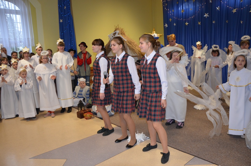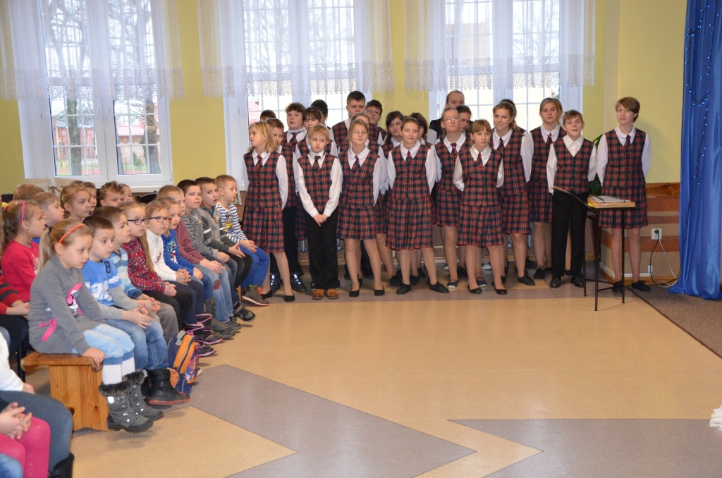 We wtorek 13 stycznia 2015 roku odbył się pierwszy z cyklu koncertów „Dzieci Dzieciom”. Uczniowie naszej placówki pod kierunkiem pani Barbary Mudlaff i z pomocą kilkunastu nauczycieli przedstawili program „Chwalcie Dziecinę” zaproszonym gościom: uczniom Szkoły Podstawowej w Szemudzie i uczniom Szkoły Podstawowej Zgromadzenia Sióstr Zmartwychwstania Pańskiego w Wejherowie.