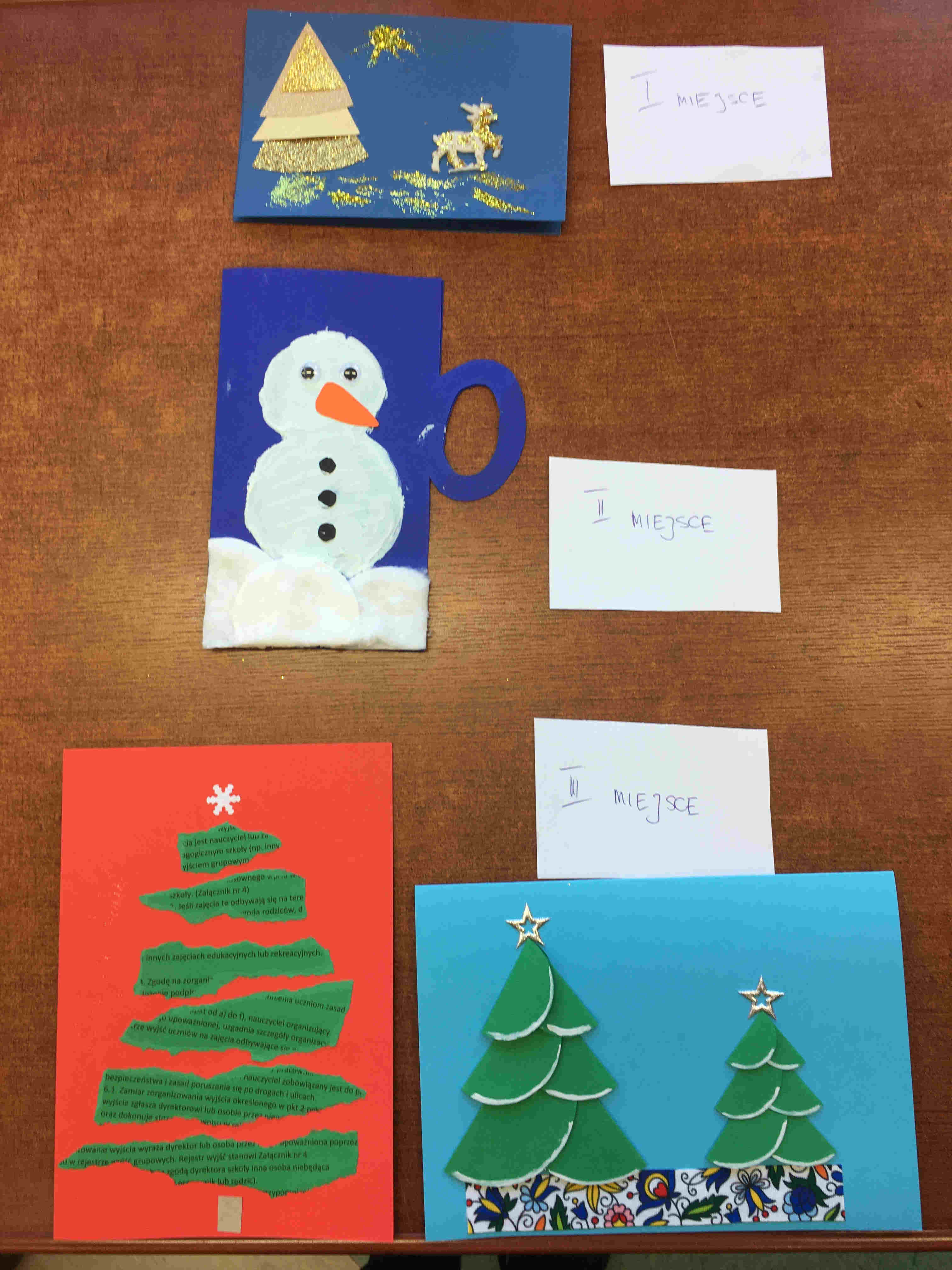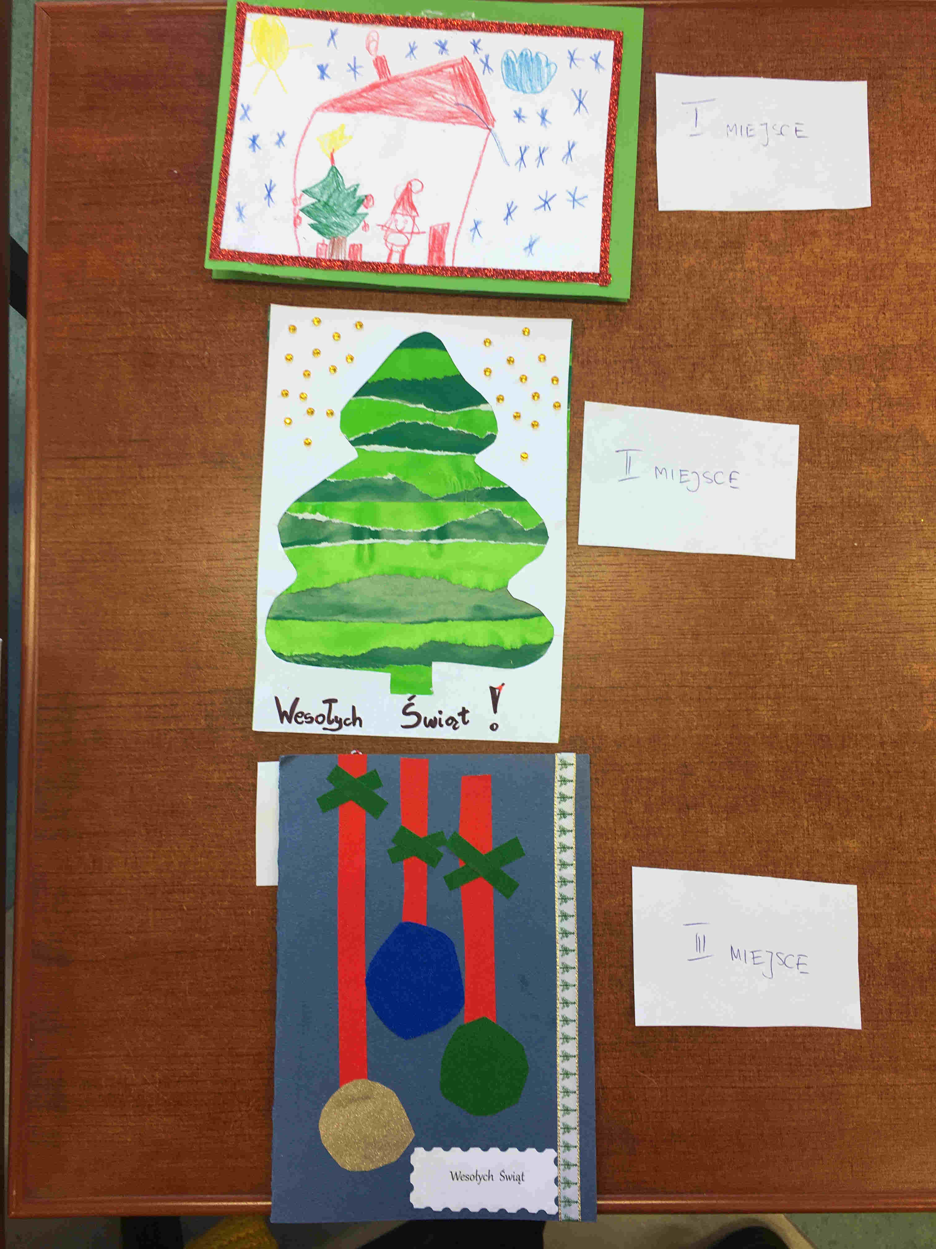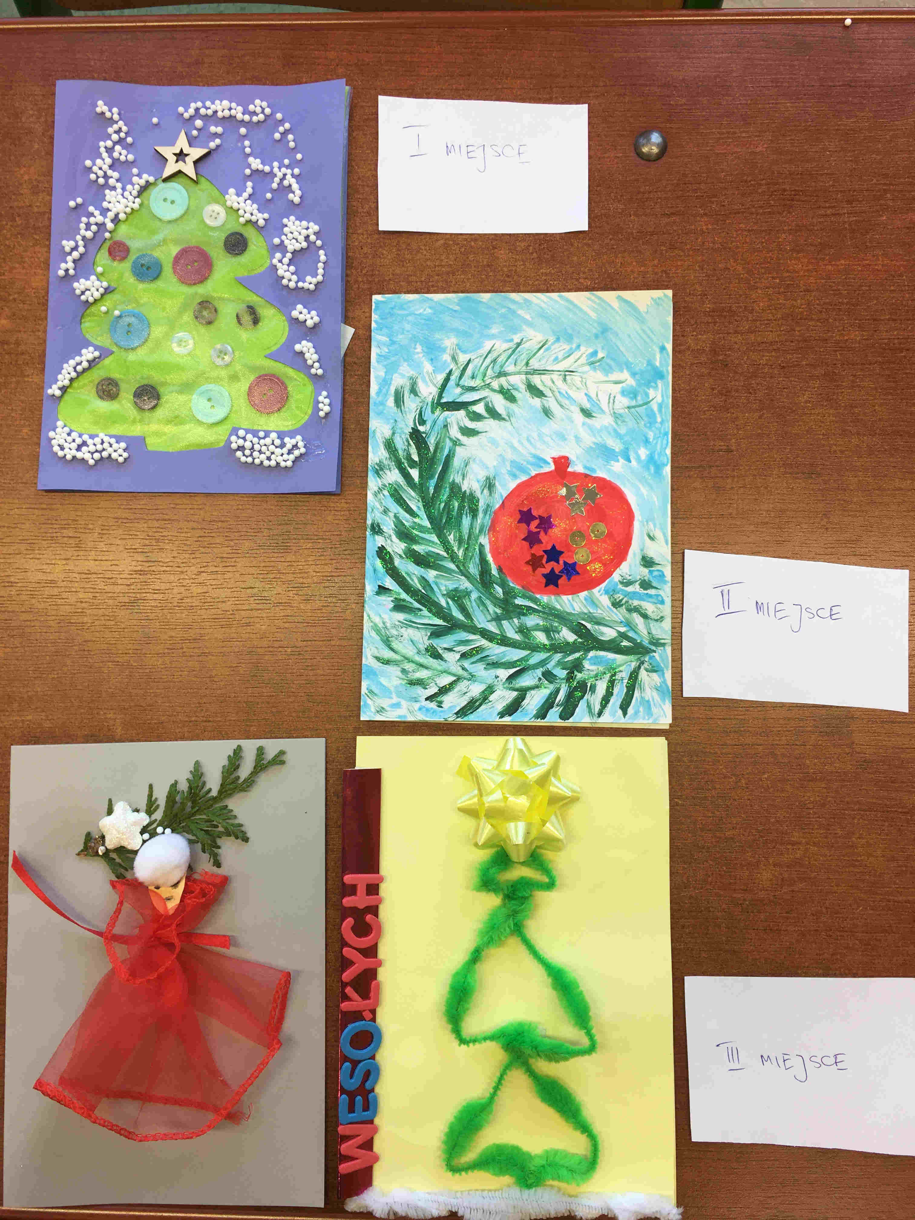 Szkolny konkurs „Kartka Bożonarodzeniowa” został rozstrzygnięty. Komisja Konkursowa miała bardzo trudną pracę do wykonania. Spośród wielu kartek świątecznych musiała wybrać te „najpiękniejsze”. Wybór był niełatwy. Pomysłowość i ich barwność najlepiej ukażą zdjęcia. Wszystkim, którzy wzięli udział w Konkursie na Kartkę Bożonarodzeniową serdecznie dziękujemy, a wyróżnionym gratulujemy.