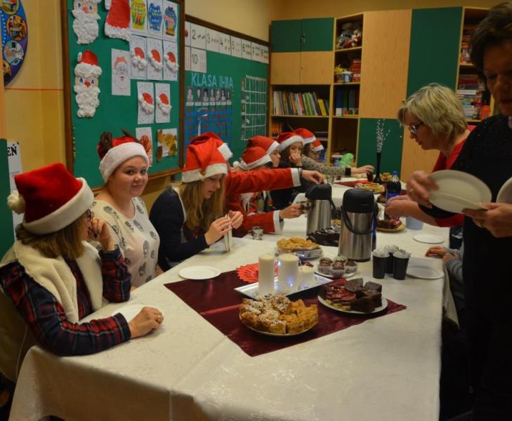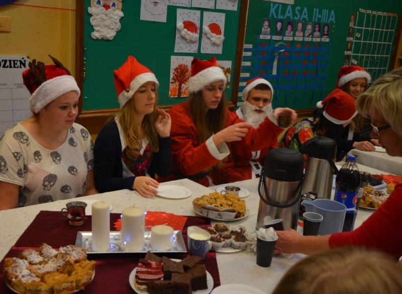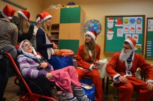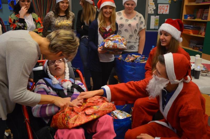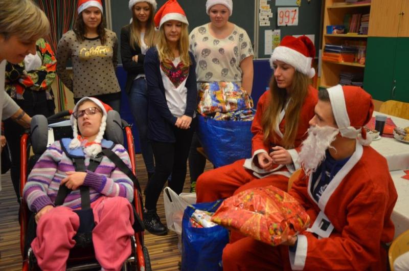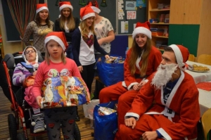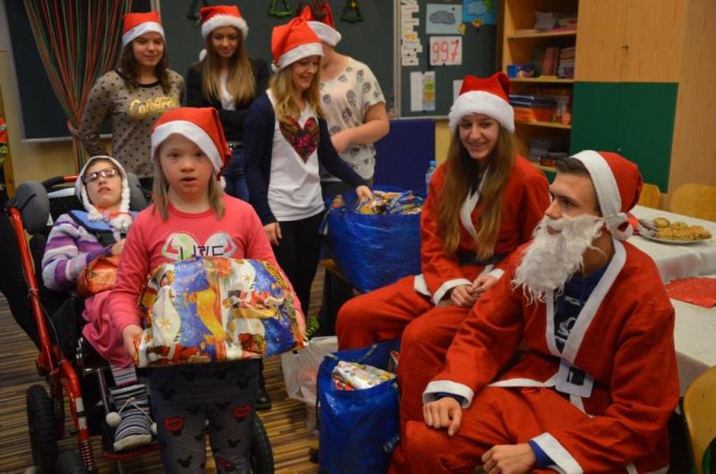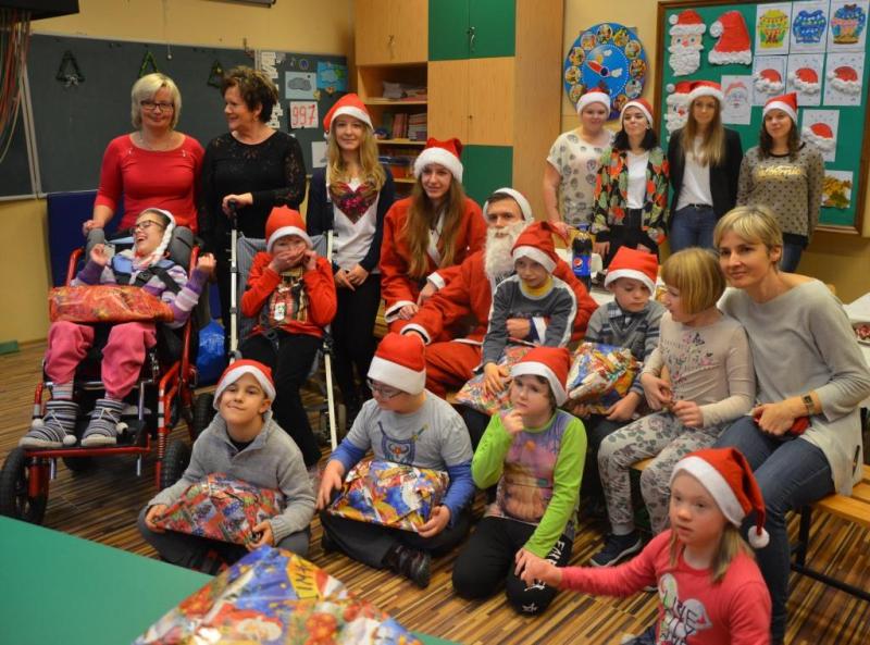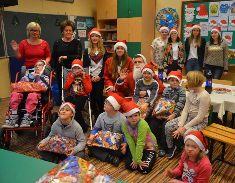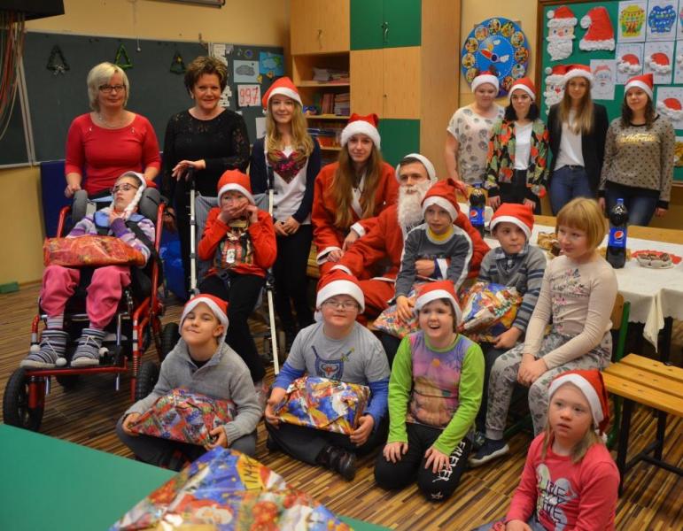 Dnia 08 grudnia 2016 roku uczniów klasy drugiej i trzeciej zespołów edukacyjno- terapeutycznych Szkoły Podstawowej nr 7 odwiedziła młodzież z II LO w Wejherowie wraz z opiekunem panią Hanną Kamińską-Drąg. Licealiści przygotowali słodki poczęstunek oraz upominki mikołajkowe dla wszystkich dzieci. Podczas spotkania panowała świąteczna atmosfera i wesoły nastrój.