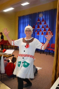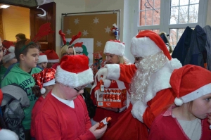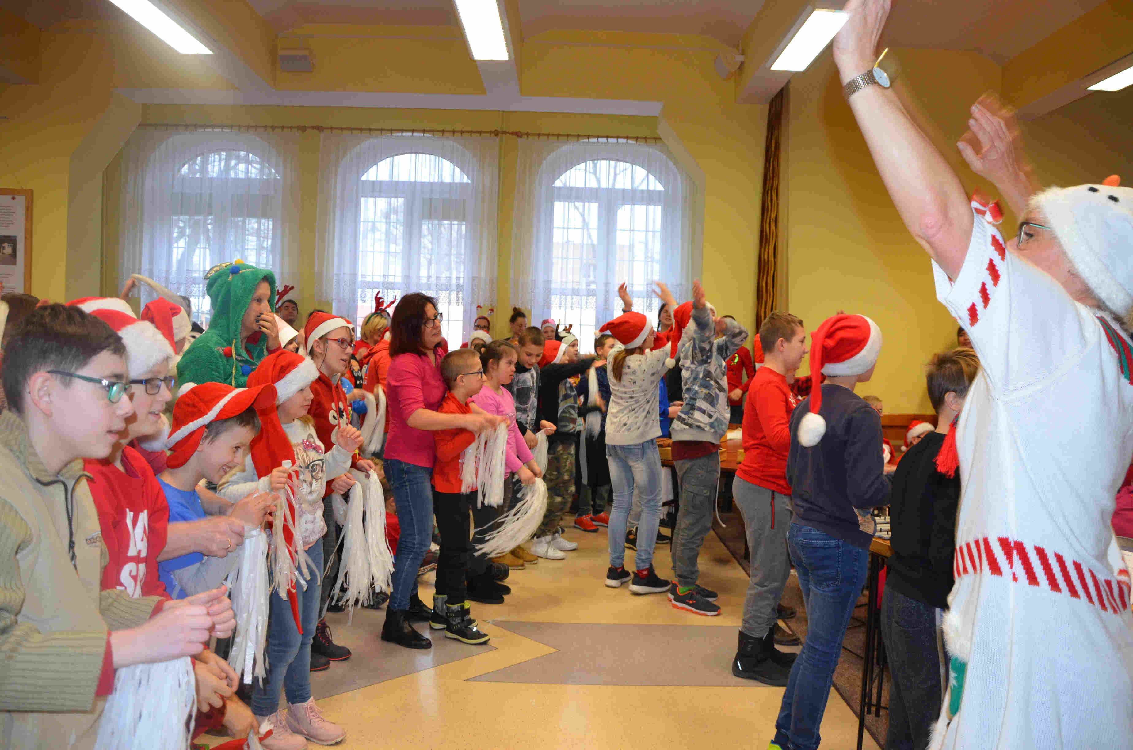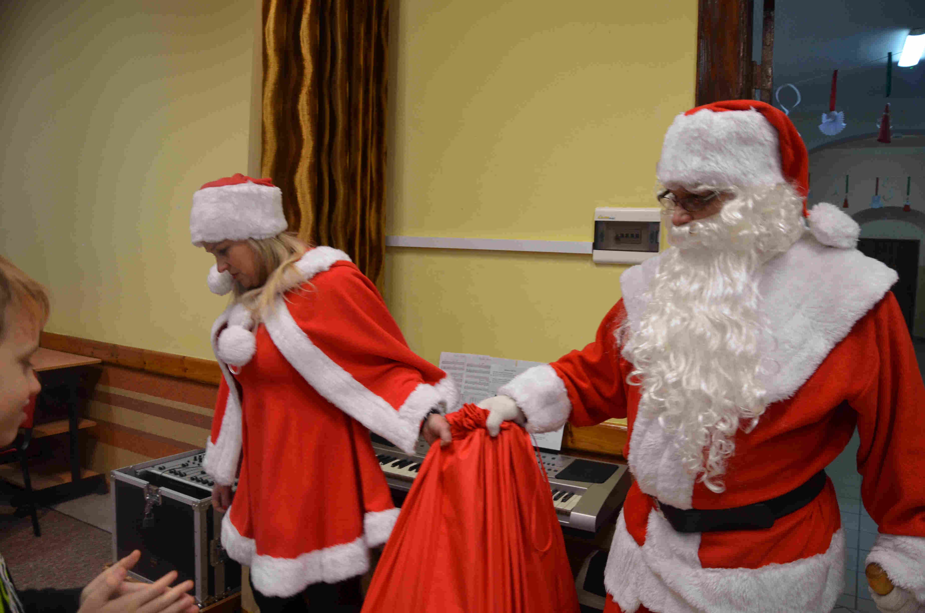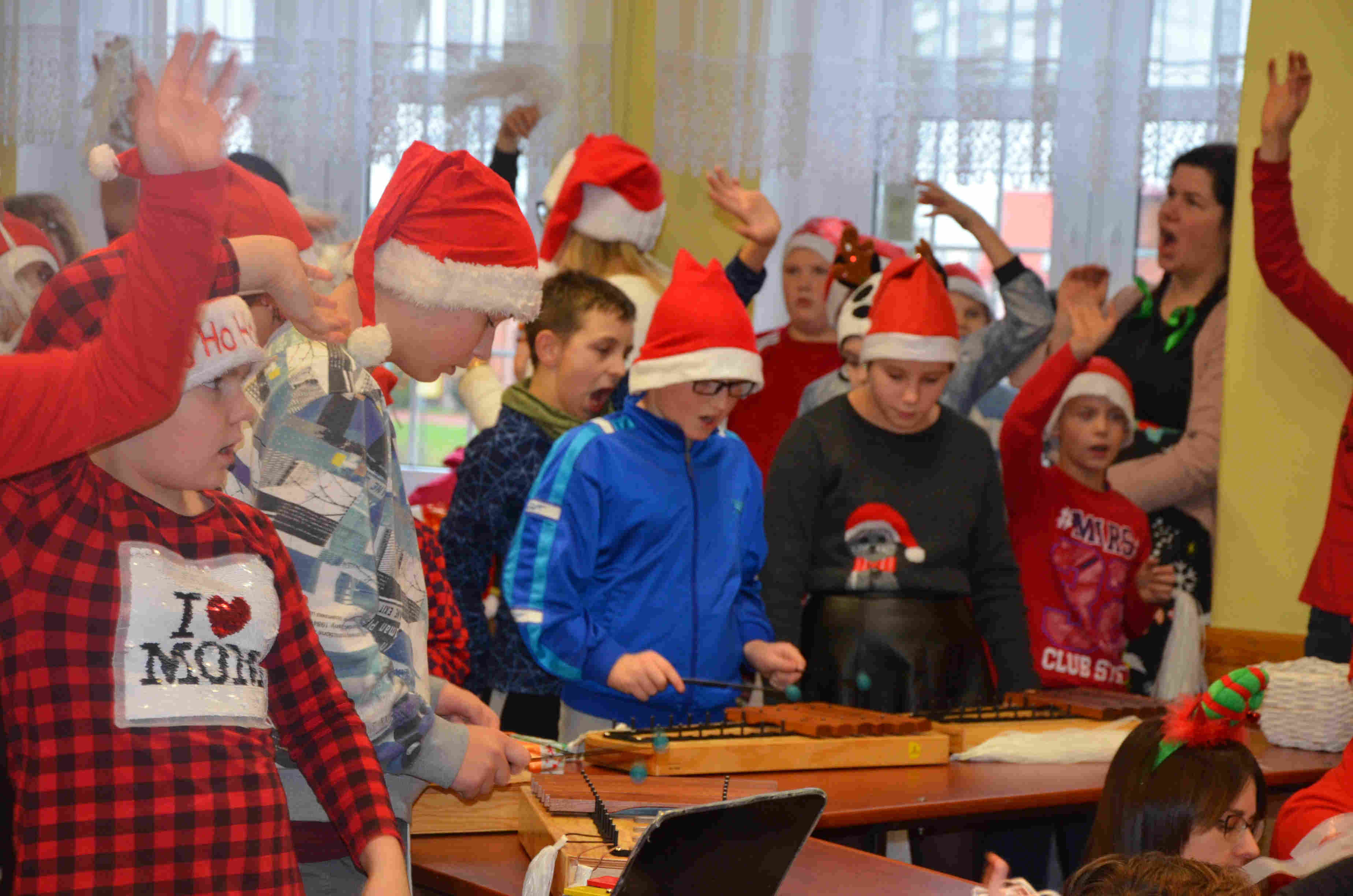 Pani Basia Mudlaff przygotowała program – niespodziankę dla wszystkich Mikołajów. Uczniowie dali z siebie wszystko – śpiewali i grali na instrumentach. W nagrodę dzieci otrzymały maskotki i czekoladowe figurki. W rewanżu za prezenty nasi goście zostali obdarowani własnoręcznie przygotowanymi przez dzieci drobiazgami.
