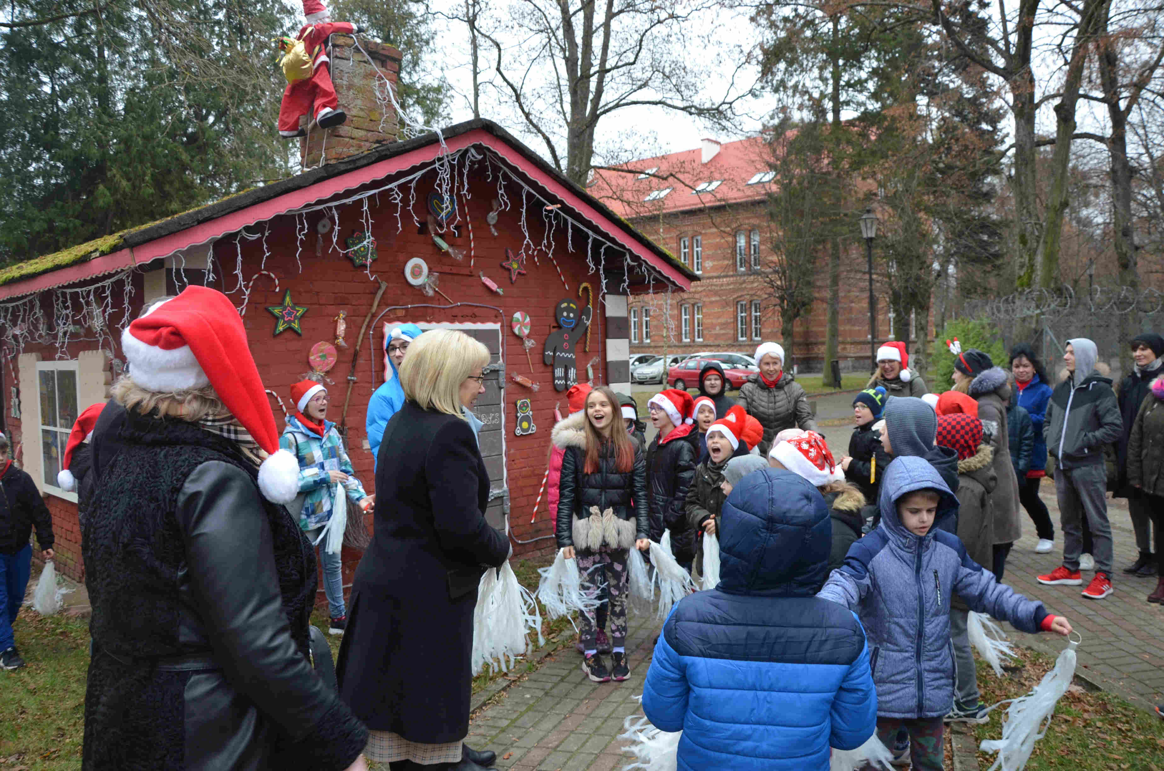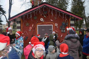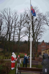 To nie wszystkie atrakcje tego dnia. Godzinę później Starosta Powiatu Wejherowskiego pani Gabriela Lisius, pani dyrektor Małgorzata Woźniak oraz uczniowie klas I-III oficjalnie otworzyli sezon „Święta 2019” poprzez wciągnięcie na maszt mikołajowej flagi i zapalenie świątecznych iluminacji na domku Baby Jagi.