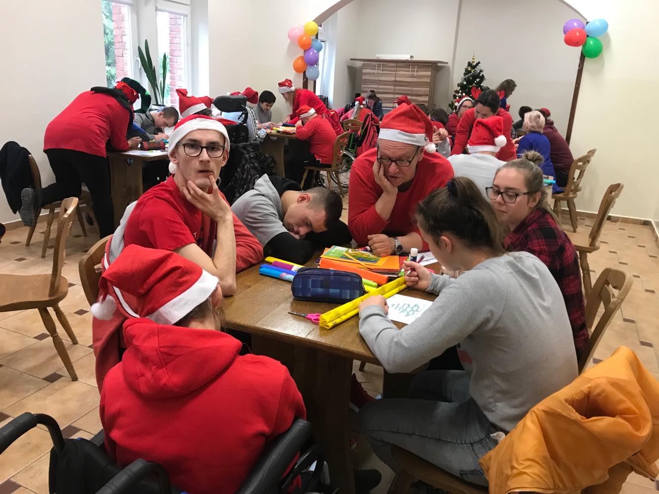W Szkole Przysposabiającej do Pracy odbyły się warsztaty mikołajkowe. Wszystkie klasy miały za zadanie rozwiązać zagadki matematyczne, rebusy i krzyżówki, a następnie przygotować łańcuch choinkowy na konkurs. Piękne i pomysłowe łańcuchy zdobią choinkę w auli szkoły, czekając na werdykt Jury. Po warsztatach odwiedził nas Mikołaj z Panią Mikołajową oraz Pomocnik Mikołaja 😊