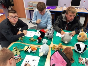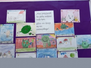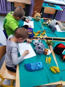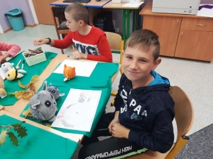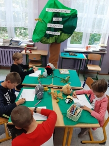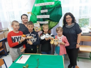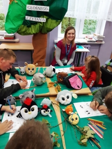 Ogólnopolski Dzień Głośnego Czytania odbył się w naszej bibliotece szkolnej w dniach 27 i 30 września 2019r. Tematem tego dnia była przyjaźń i przyroda. Uczniowie w towarzystwie pluszowych bohaterów wysłuchali opowiadania „Drzewo” ze zbioru „Gang Słodziaków”, zmierzyli się z rysowaniem swoich ulubionych bohaterów oraz projektowaniem wizerunku zwierząt w „słodziakowym” stylu. Ich kreatywność zaowocowała gazetką ścienną, którą można podziwiać w bibliotece.