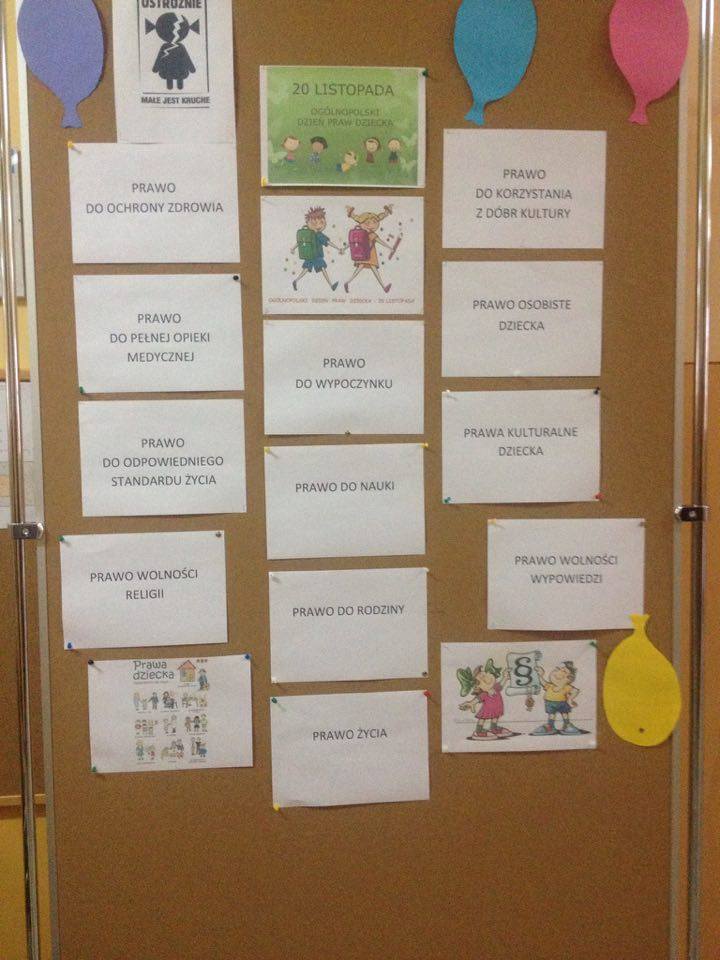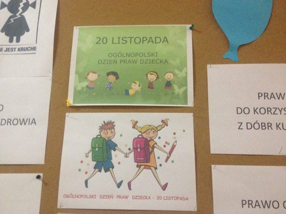 20 listopada pani Agnieszka Żukowska, pani Marzena Barzowska, Magdalena Jeka i Małgorzata Kachnicz-Fabich zorganizowały zajęcia z okazji Ogólnopolskiego Dnia Praw Dziecka.  Uczniowie każdej ze szkół obejrzeli prezentację oraz  uczestniczyli w warsztatach pt. „Znamy swoje prawa i obowiązki”.