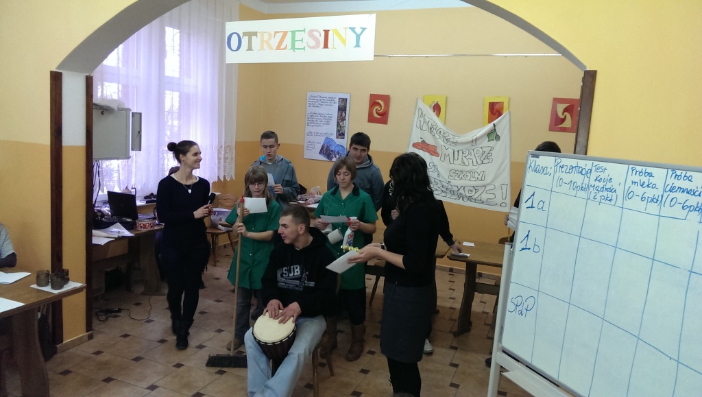 Dnia 16 stycznia odbyły się otrzęsiny uczniów klas pierwszych ZSZ Gimnazjum oraz SSPdP. W tym dniu uczniowie zaprezentowali dla nas wierszyki, piosenki, plakaty i hasła klasowe. Nie zabrakło również zabawnych kostiumów. Główną atrakcją były ciekawe konkurencje takie jak: Test kociej mądrości, próba ciemności, próba mleka, jedzenie pączków bez użycia rąk, oraz próba zręczności. Na zakończenie wyłoniono zwycięskie klasy oraz złożono uroczysta przysięgę.