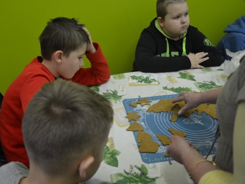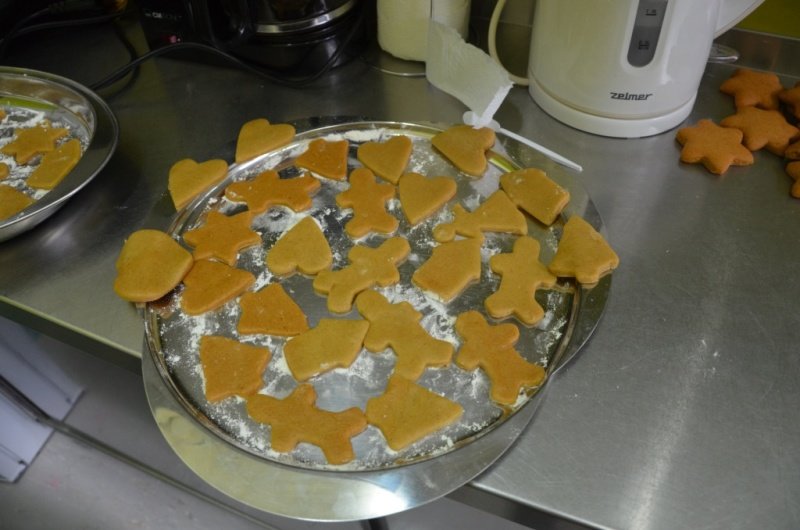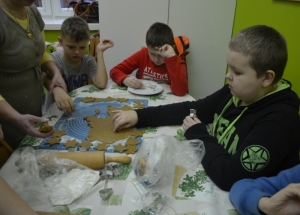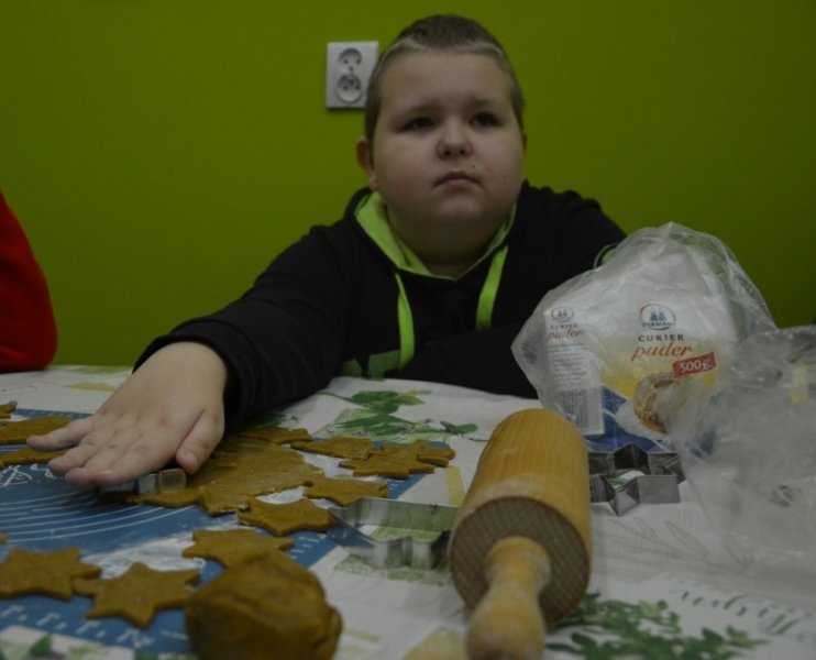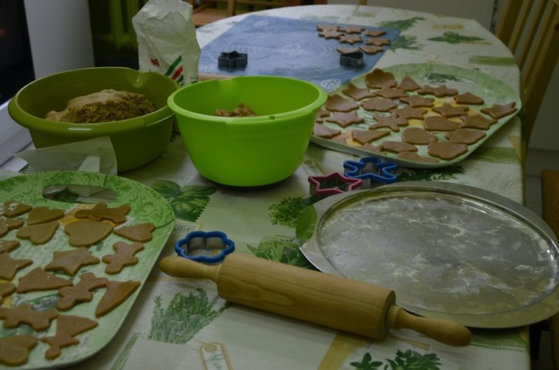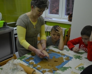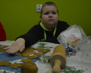 Trwają już także przygotowania do szkolnej Wigilii, o czym świadczą cudowne korzenne zapachy unoszące się na korytarzach. Prawie każdego dnia w naszej małej kuchence zaangażowani „cukiernicy” gniotą, wałkują, wycinają i pieką pierniki.