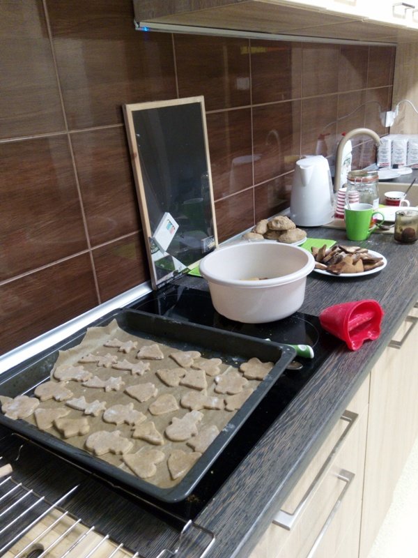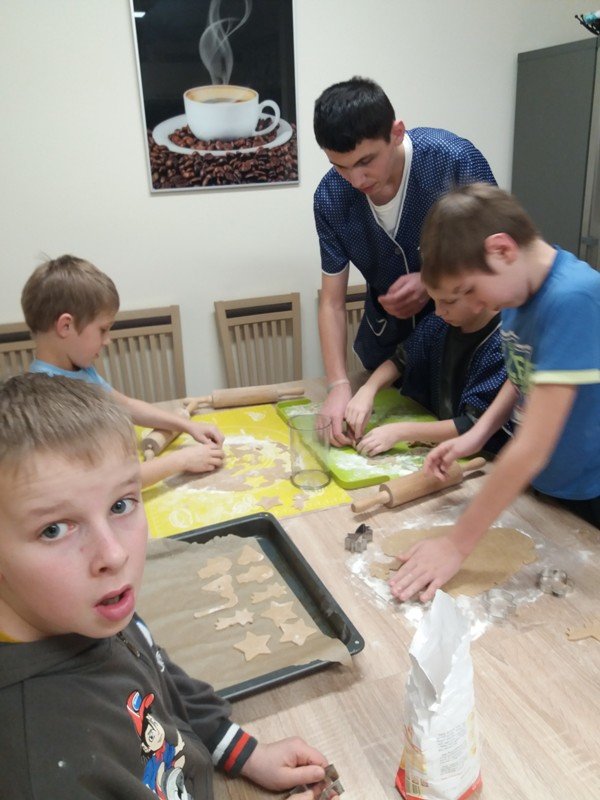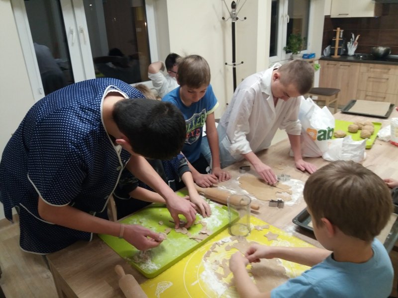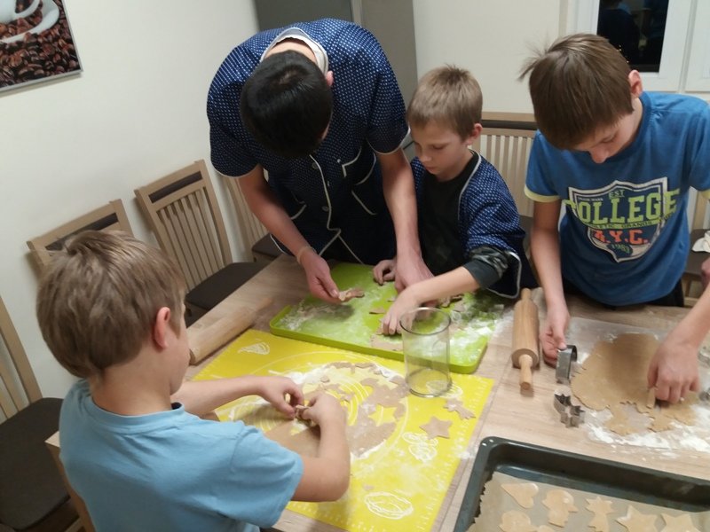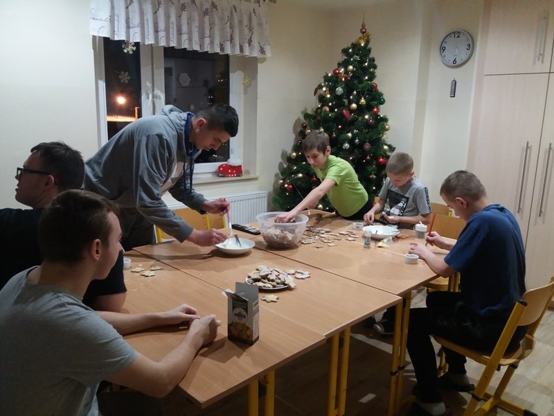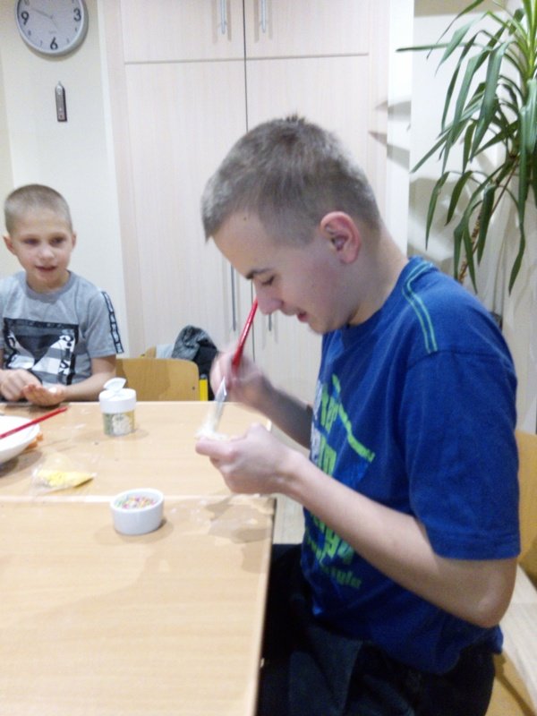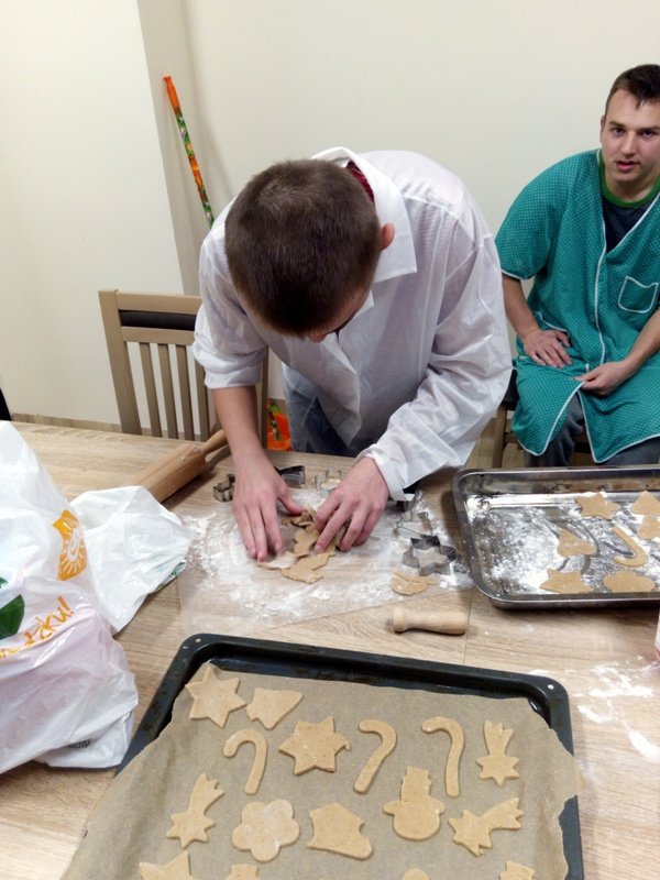 Chłopaki z II grupy wzięli się solidnie do pracy. Najpierw przepis, potem ciasto, wykrawanie i do piekarnika. Wyszły znakomite i pachnące, potem dekorowanie i świetna zabawa, a przy tym śpiewanie kolęd. Gorzej było później sprzątanie ;).