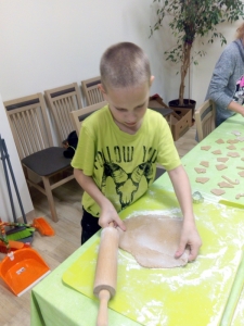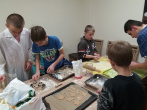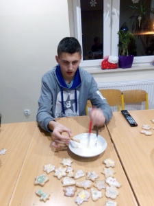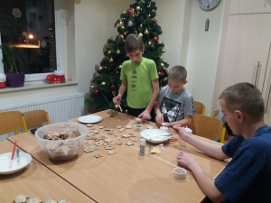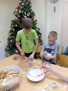 Chłopaki z II grupy wzięli się solidnie do pracy. Najpierw przepis, potem ciasto, wykrawanie i do piekarnika. Wyszły znakomite i pachnące, potem dekorowanie i świetna zabawa, a przy tym śpiewanie kolęd. Gorzej było później sprzątanie ;).