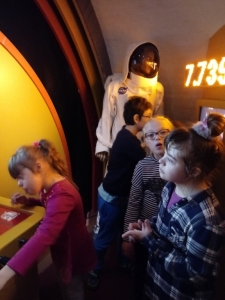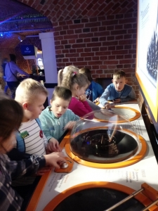 16 października 2019r. uczniowie klas II/III c i II/III b podczas pobytu w Parku Nauki Hevelianum w Gdańsku uczestniczyli w podróży przez wszystkie kontynenty i poznawali tajemnice otaczającego ich świata. Poznali budowę Ziemi oraz jej florę i faunę. Najwięcej radości sprawiła im możliwość symulowanego kierowania autem, zabawa świecącymi klockami oraz przeprowadzanie różnego rodzaju eksperymentów. Niesamowitego wrażenia dostarczyło przebywanie w kabinie, w której „szalał” huragan. Uczniowie mieli też możliwość wykazania się wiedzą z ekologii i recyklingu. Duża ilość stanowisk i ich różnorodność zagwarantowały aktywny udział każdego dziecka, a widok z Gradowej Góry zachwycił wszystkich – wspaniała panorama Gdańska.