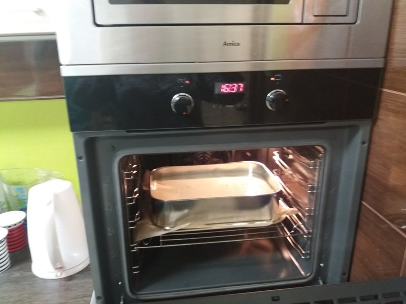Piec w temperaturze ok. 160 °C ok. 60 minut (aż będzie ładny brązowy kolor i będzie pękać).