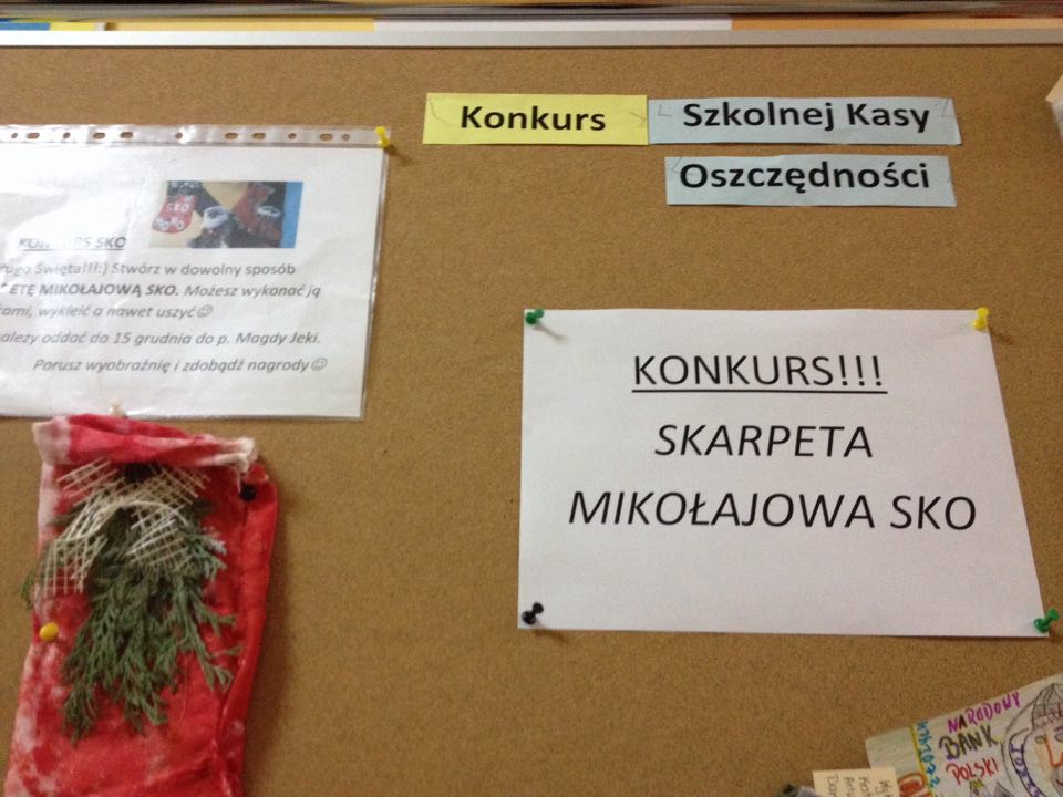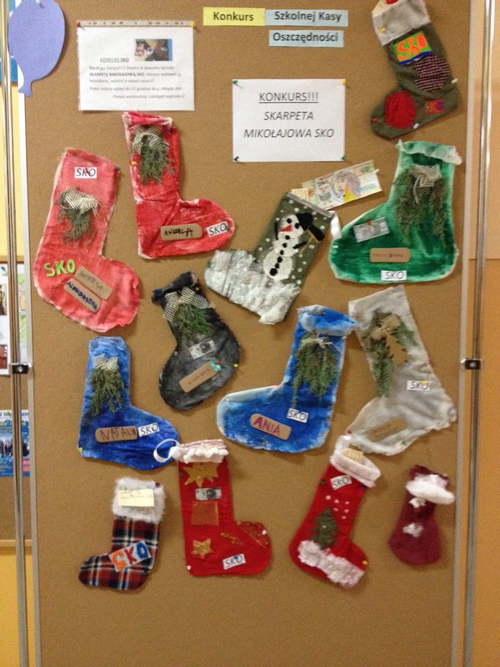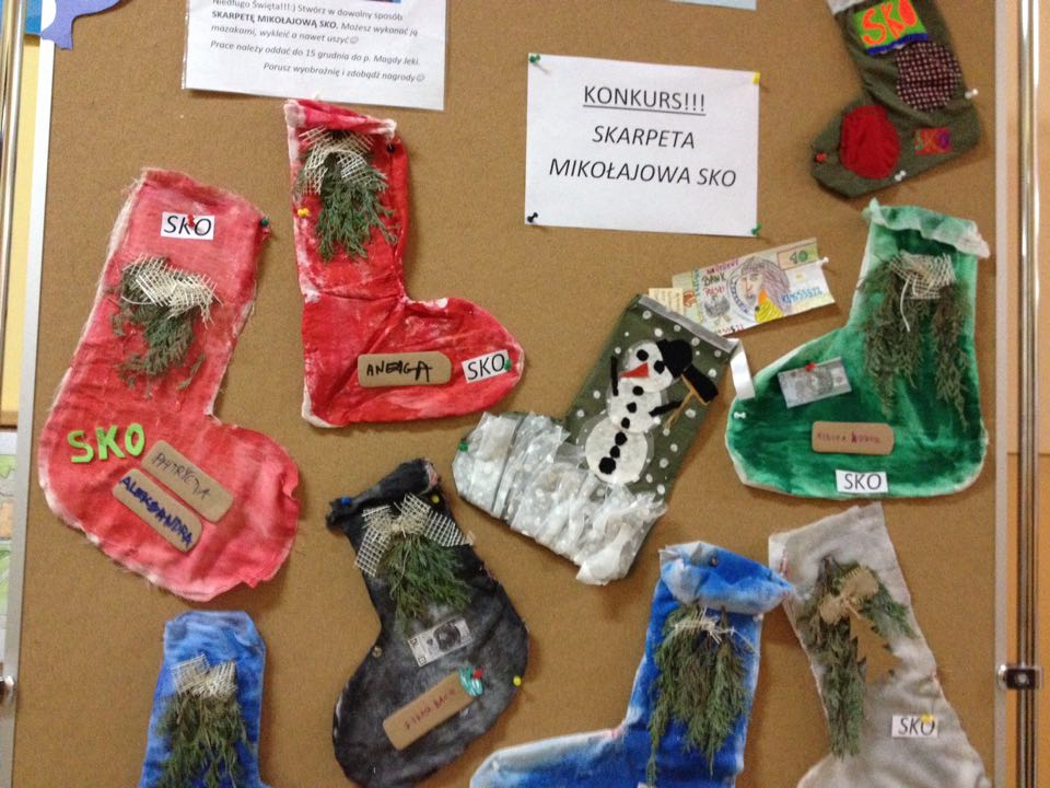 Coraz bliżej Święta! Dwa tygodnie temu ogłoszono konkurs plastyczny „Skarpeta Mikołajowa SKO”. Wykonane przez uczniów prace są naprawdę śliczne! Niebawem wyłonimy laureatów, a więc cierpliwości!:)