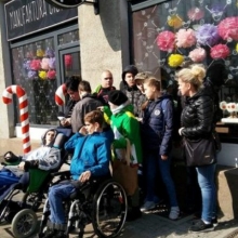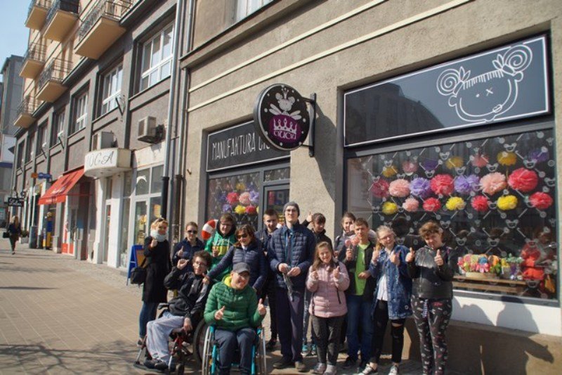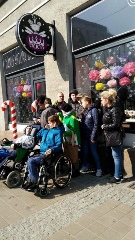 W dniu 13 kwietnia 2018r. uczniowie z zespołów edukacyjno-terapeutycznych gimnazjum wybrali się na wycieczkę do Manufaktury Słodyczy „CiuCiu” w Gdyni. Grupa była dość liczna, dlatego część uczniów pojechała kolejką skm a część busami szkolnymi. Przejazd pociągiem sprzyjał rozwijaniu kompetencji społecznych.