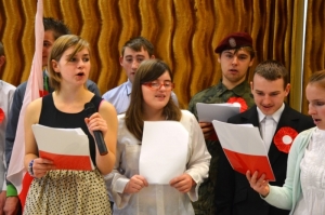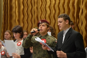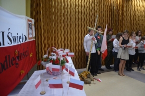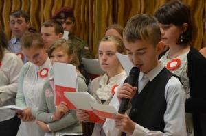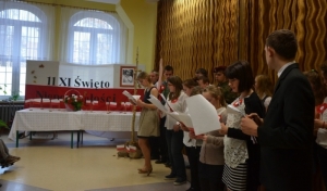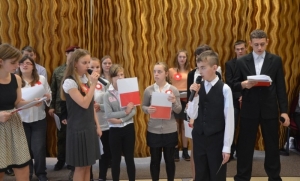 10 listopada gościliśmy w szkole podstawowej wychowanków naszego internatu , którzy zorganizowali dla nas piękną patriotyczną akademię z okazji Rocznicy Odzyskania Niepodległości Polski. Program przedstawiony przez młodzież był bardzo wzruszający, podniosły i uroczysty. Wszystkim podobały się wiersze i pieśni, które wspólnie z artystami śpiewaliśmy w czasie uroczystości.