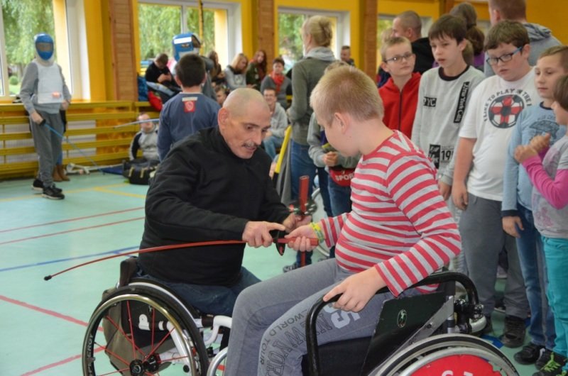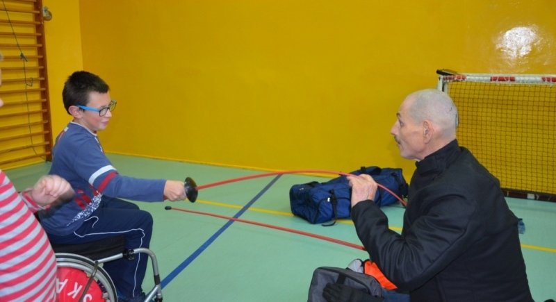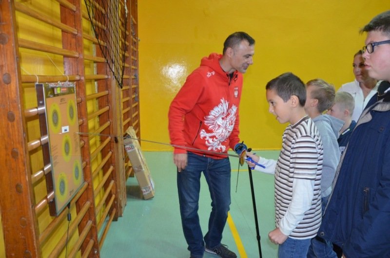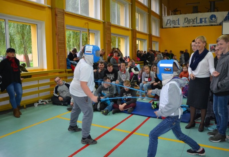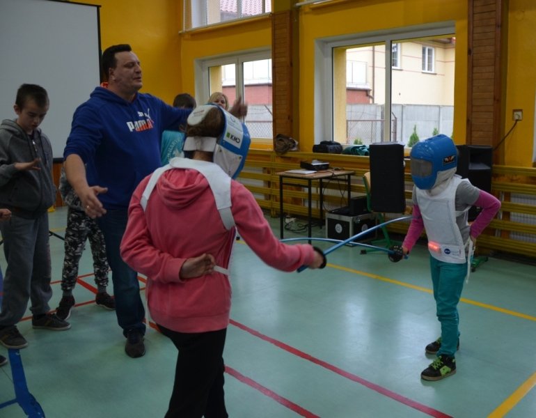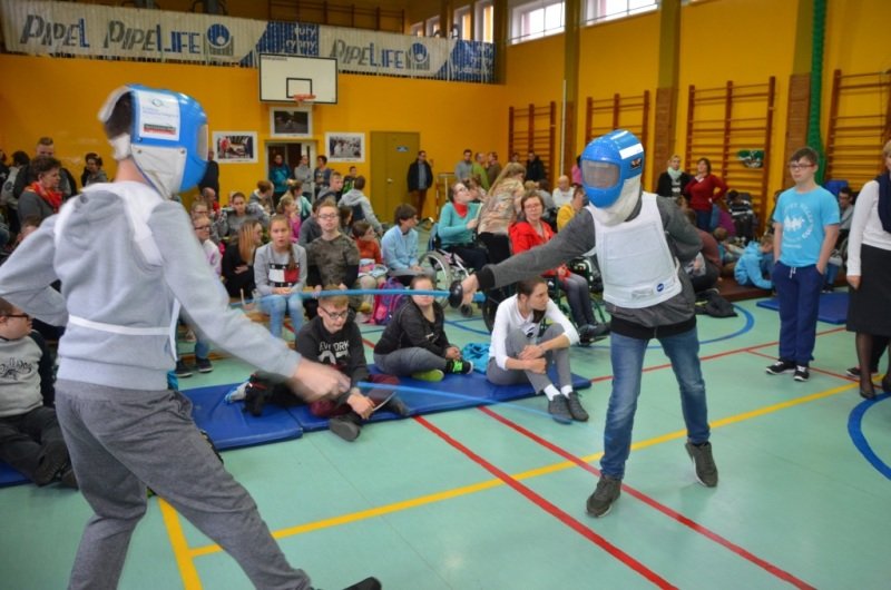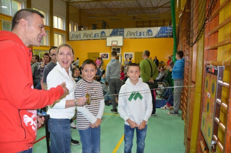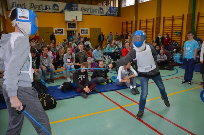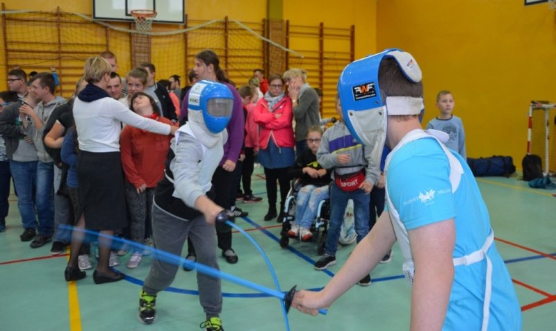 Część druga spotkania szczególnie przypadła uczestnikom do gustu. Chętni mogli spróbować swoich sił w szermierce sportowej. Olimpijczykom dziękujemy.