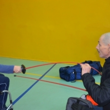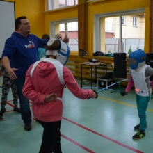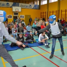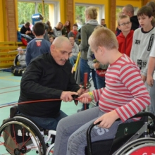 Część druga spotkania szczególnie przypadła uczestnikom do gustu. Chętni mogli spróbować swoich sił w szermierce sportowej. Olimpijczykom dziękujemy.