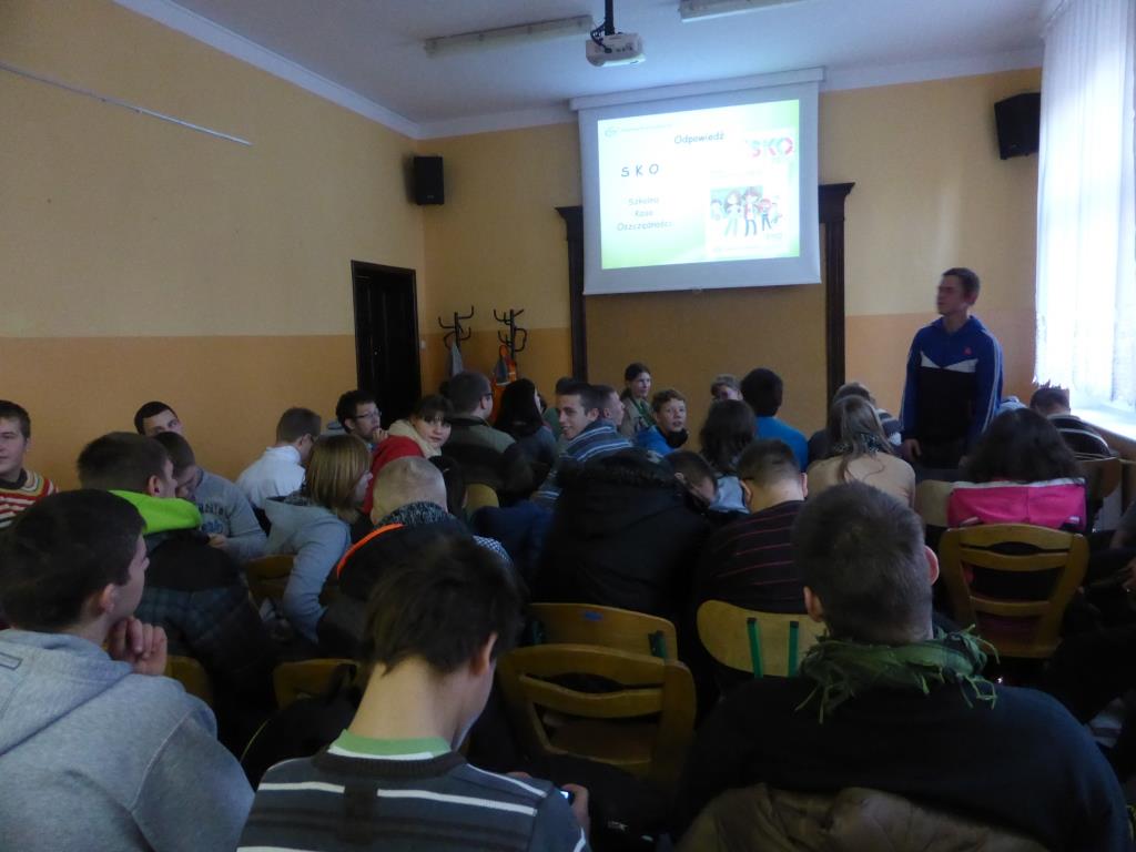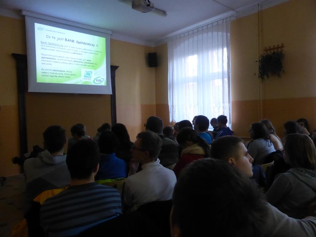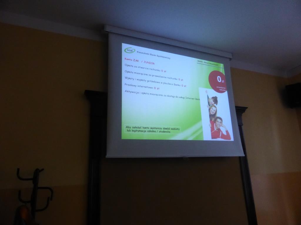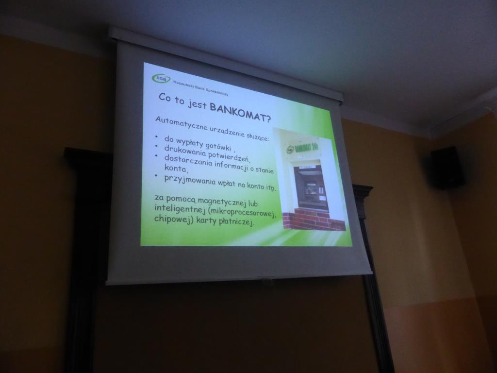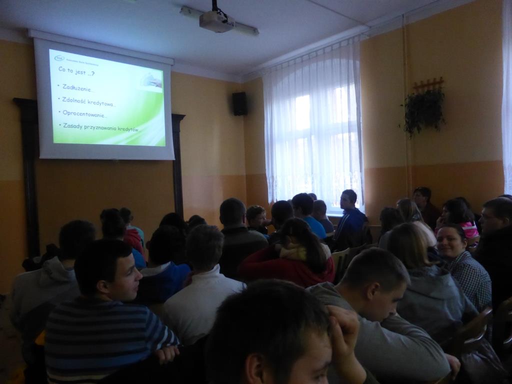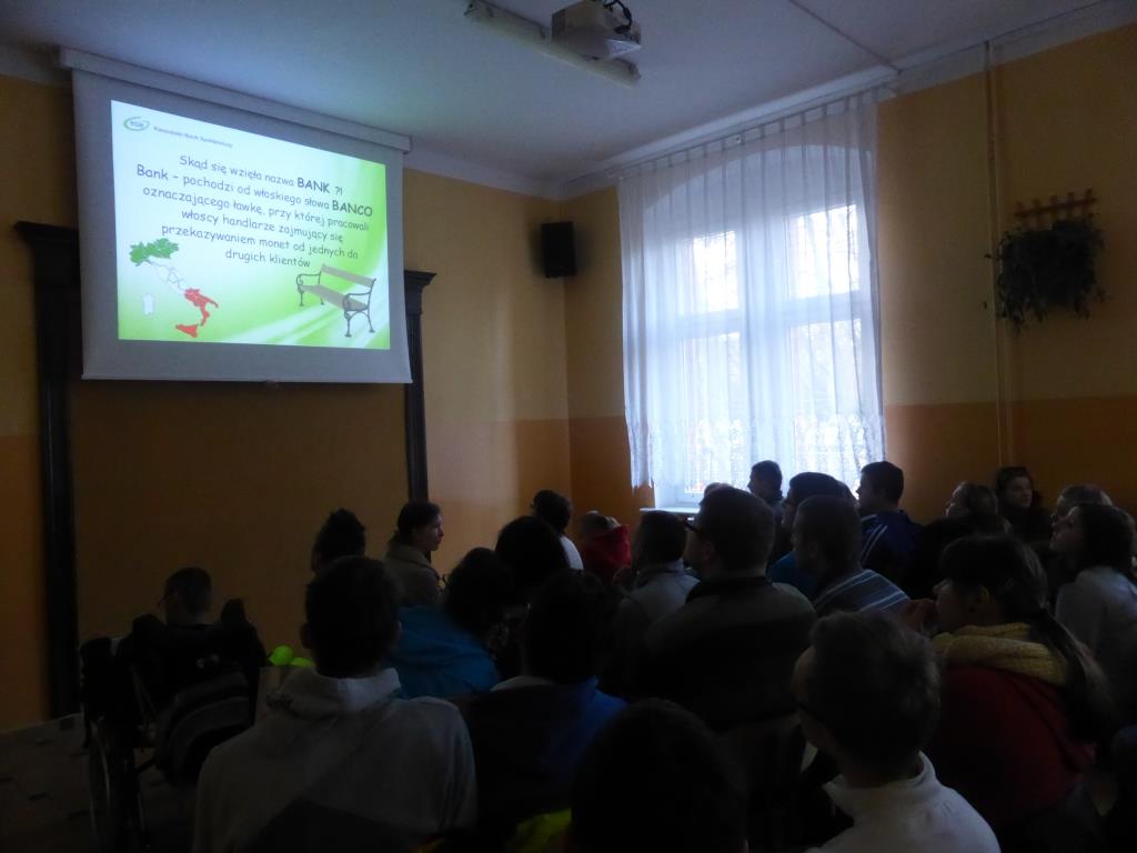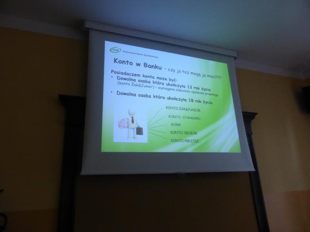 Dnia 17 grudnia w naszej szkole uczniowie gimnazjum oraz ZSZ odbyli spotkanie z przedstawicielem Kaszubskiego Banku Spółdzielczego w Wejherowie, panią Dorotą Zborowską.