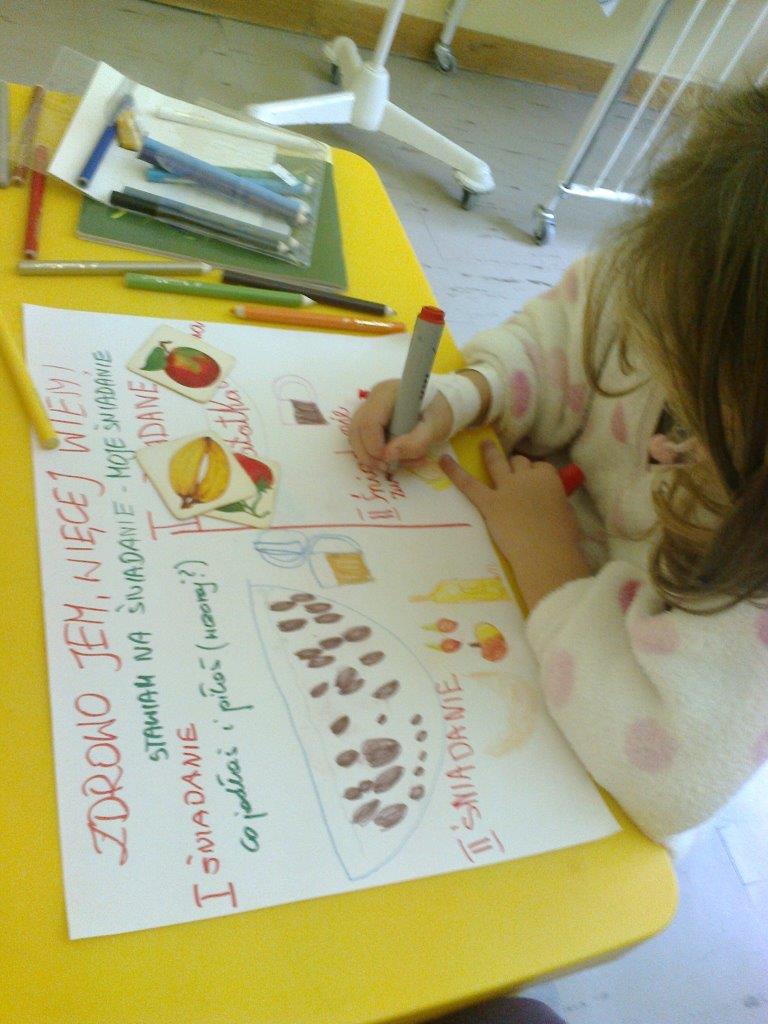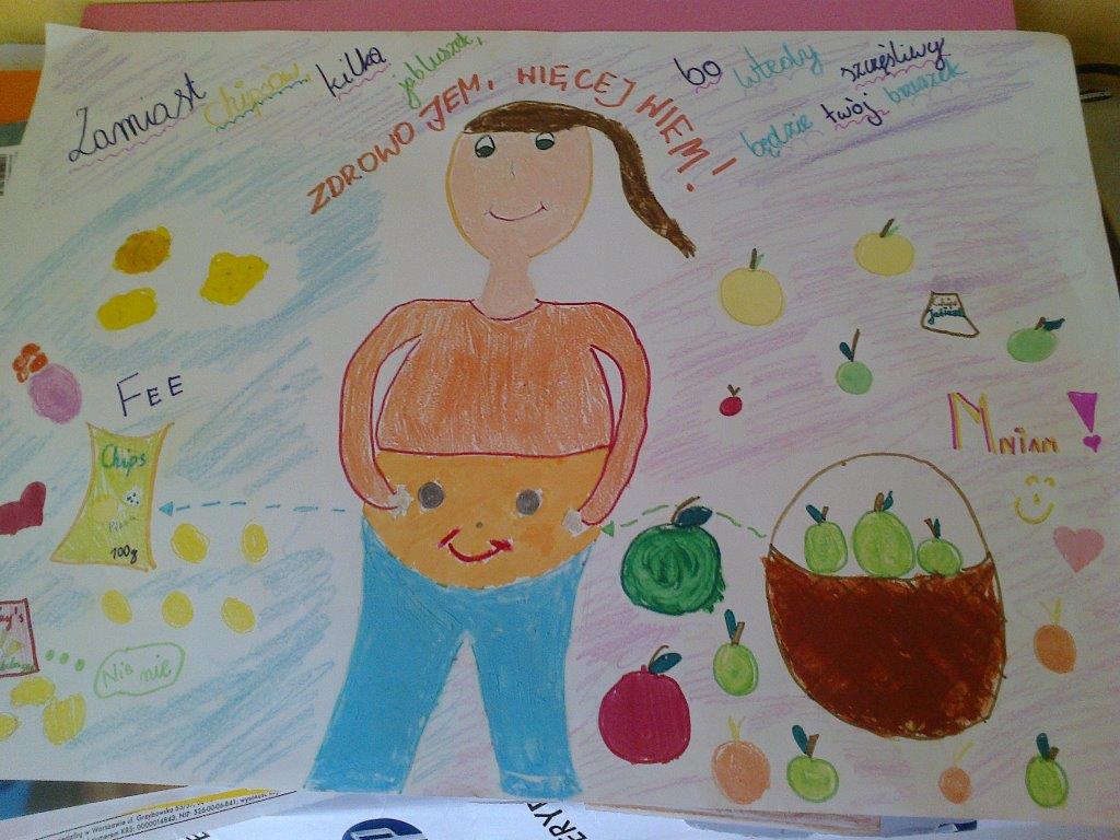 W ramach realizacji poszczególnych tematów dzieci wykonywały liczne zadania związane ze zdrowym odżywianiem, stworzyły postać Wodolubka, czyli postać, co „o zdrowie swoje dba i wodę pije co dnia”, układały jadłospisy i redagowały przepisy na sałatki warzywne i owocowe, rozwiązywały zagadki i wypełniały karty pracy „Poznajemy warzywa i owoce”, projektowały plakaty zachęcające do zrezygnowania ze słodkich napojów i słodyczy na rzecz wody i zdrowych przekąsek oraz zapoznały się z treścią prezentacji multimedialnej na temat wpływu wody na świat ludzi, zwierząt i roślin. Efekty licznych prac wielokrotnie zostały wyeksponowane w pomieszczeniu socjalnym dla rodziców na oddziale obserwacyjnym.