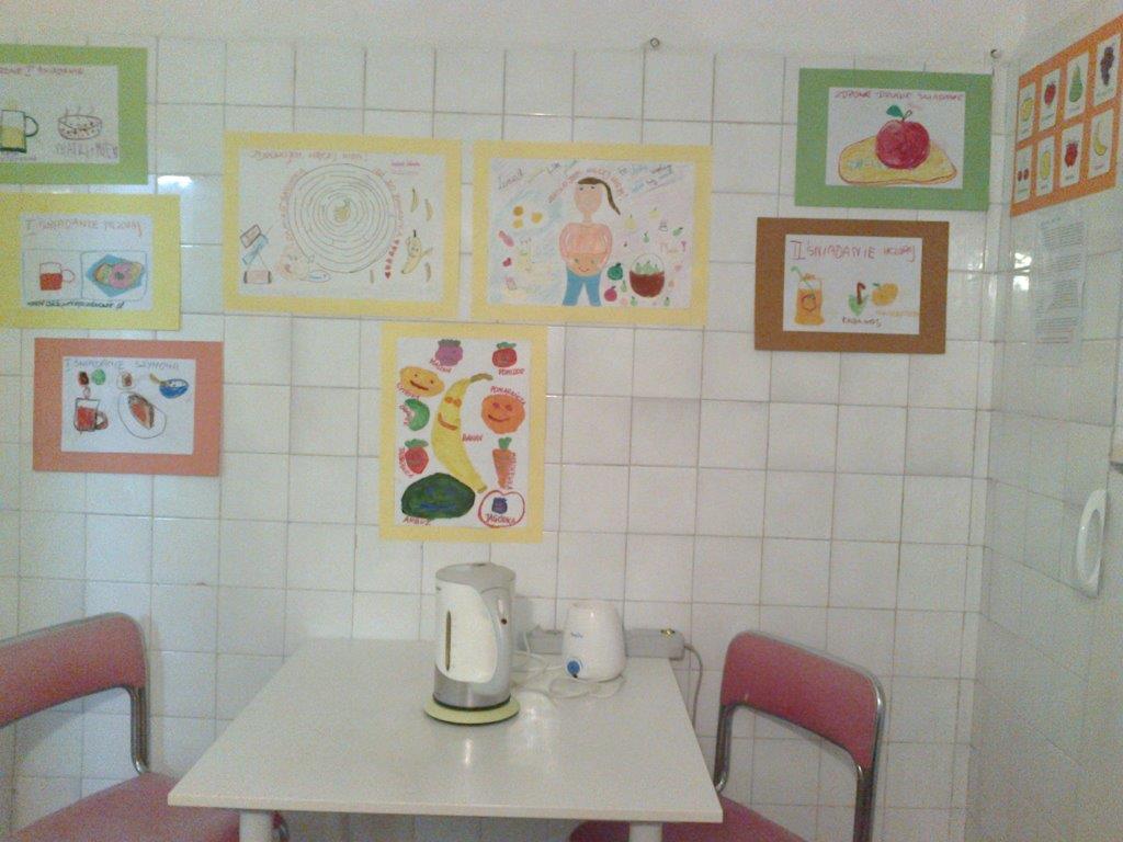 – w salach dzieci-pacjentów przeprowadzono pogadanki z rodzicami na tematy zdrowego odżywiania, wiedzy na temat warzyw i owoców oraz rezygnacji ze słodyczy 🙂 Podczas pogadanek rodzice wraz z dziećmi ustalali czym można zastąpić słone i słodkie przekąski,