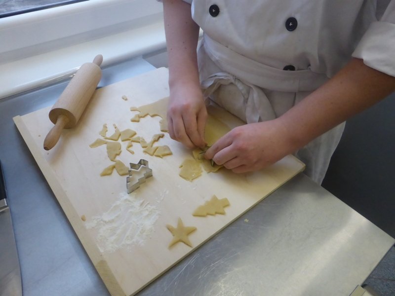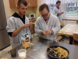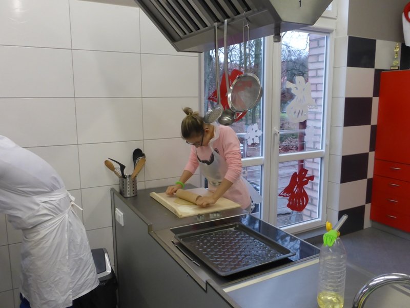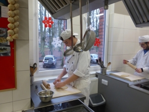 Coraz bliżej Święta!!!! Były już pierniki, a teraz czas przyszedł na ciasteczka i pierogi. Nie można było przejść obojętnie obok sali kucharskiej, czując takie zapachy. Uczniowie klasy I-IIIb SSPdP wraz z p. Wandą Politowską w ramach zajęć kultury żywienia lepili pierogi z kapustą, natomiast uczniowie ZSZ z p. Agnieszką Papke w ramach zajęć praktycznych przygotowywali kruche ciasteczka. Każdy miał swoją rolę i pracował bardzo starannie.