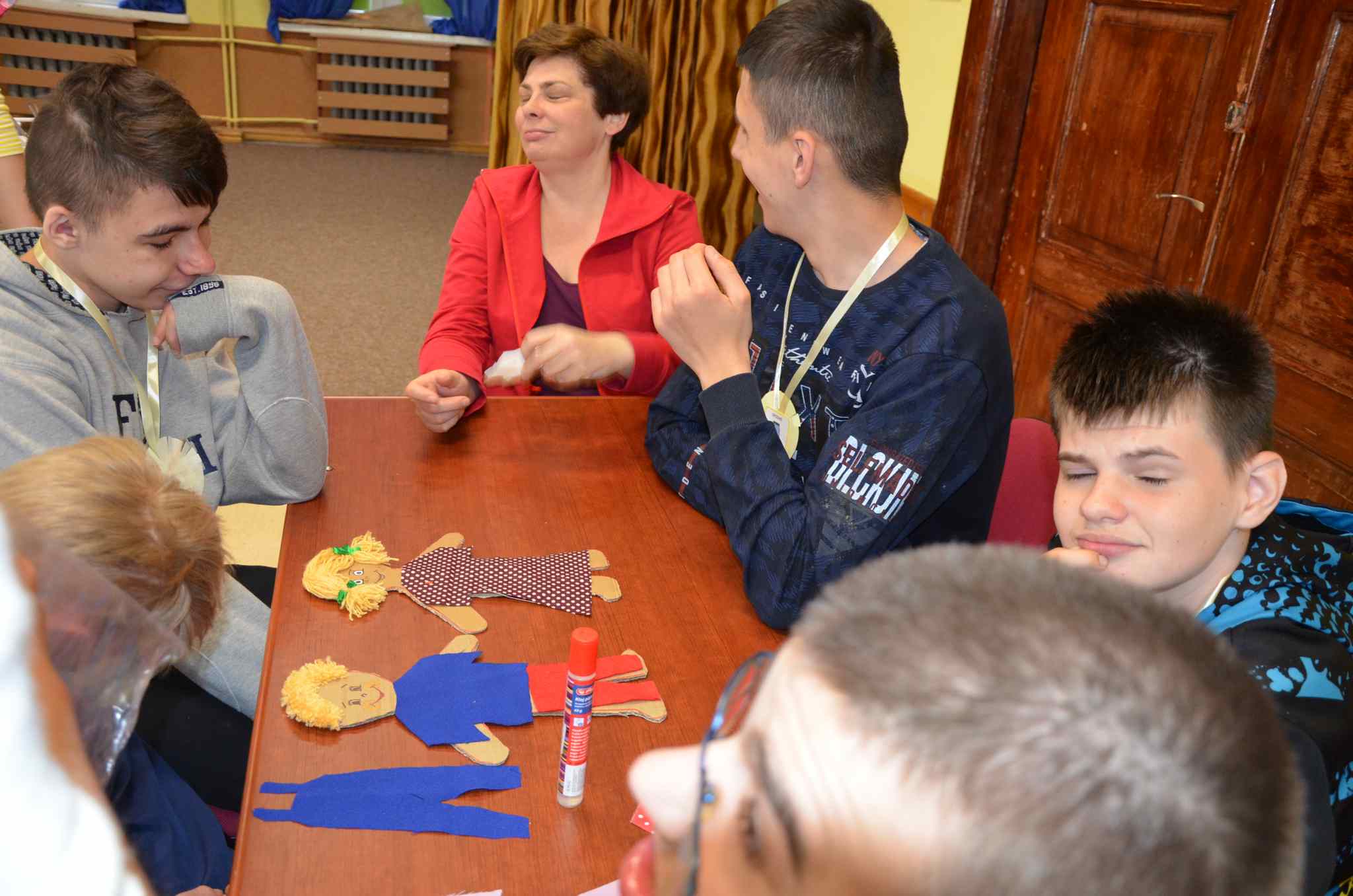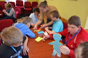 Oprócz tych przyziemnych czynności, uczniowie znaleźli też czas na kreatywne myślenie – tylko od nich zależało, jakie stroje wybiorą dla kartonowych laleczek (fryzury i barwne materiały na ubranka zawdzięczają Pani Iwonie Szulcie). Sukienki, spódnice, spodnie, jednolite, w kwiaty, kropki, paski, różnokolorowe ogrodniczki, były do dyspozycji naszych kreatorów mody. Efekty ilustruje poturniejowa wystawa na holu Szkoły Podstawowej. Dziękujemy za wspólną zabawę!
