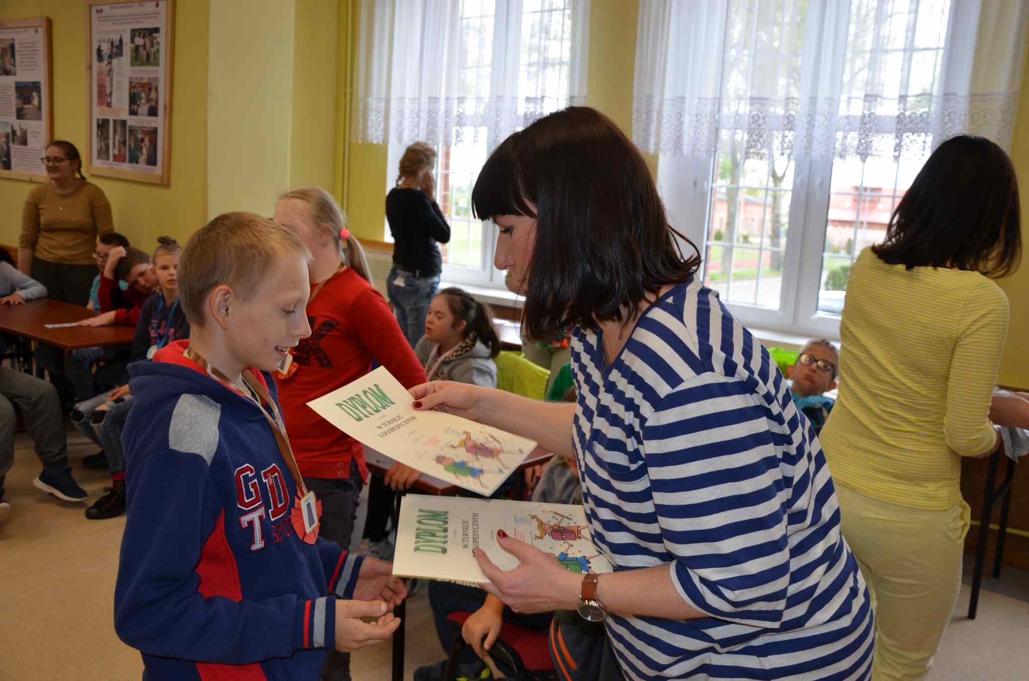 W poniedziałek 13 maja 2019 r. uczniowie klas młodszych SP po raz kolejny spotkali się na Turnieju logopedycznym. Tym razem tematem naszych zabaw i wspólnych praktycznych ćwiczeń były UBRANIA.