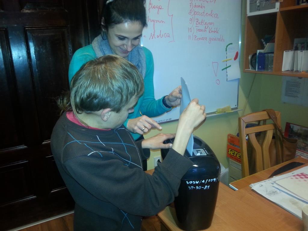 Uczniowie na zajęciach: Prace biurowe i sprawy urzędowe poza wyjściami do różnych instytucji, bardzo uważnie pracują przy komputerach, na których uczą się obsługi podstawowych programów Microsoft Office (pisaniu, tworzeniu tabel, prezentacji i wykresów) oraz korzystaniu z Internetu. Uczniowie na zajęciach rówież, obsługują takie urządzenia jak drukarka, niszczarka, laminarka, bindownica. Z chęcią wykonują każde zadanie samodzielnie, gdyż wiedzą, że wiedza zdobyta na zajęciach będzie im bardzo przydatna w przyszłości.