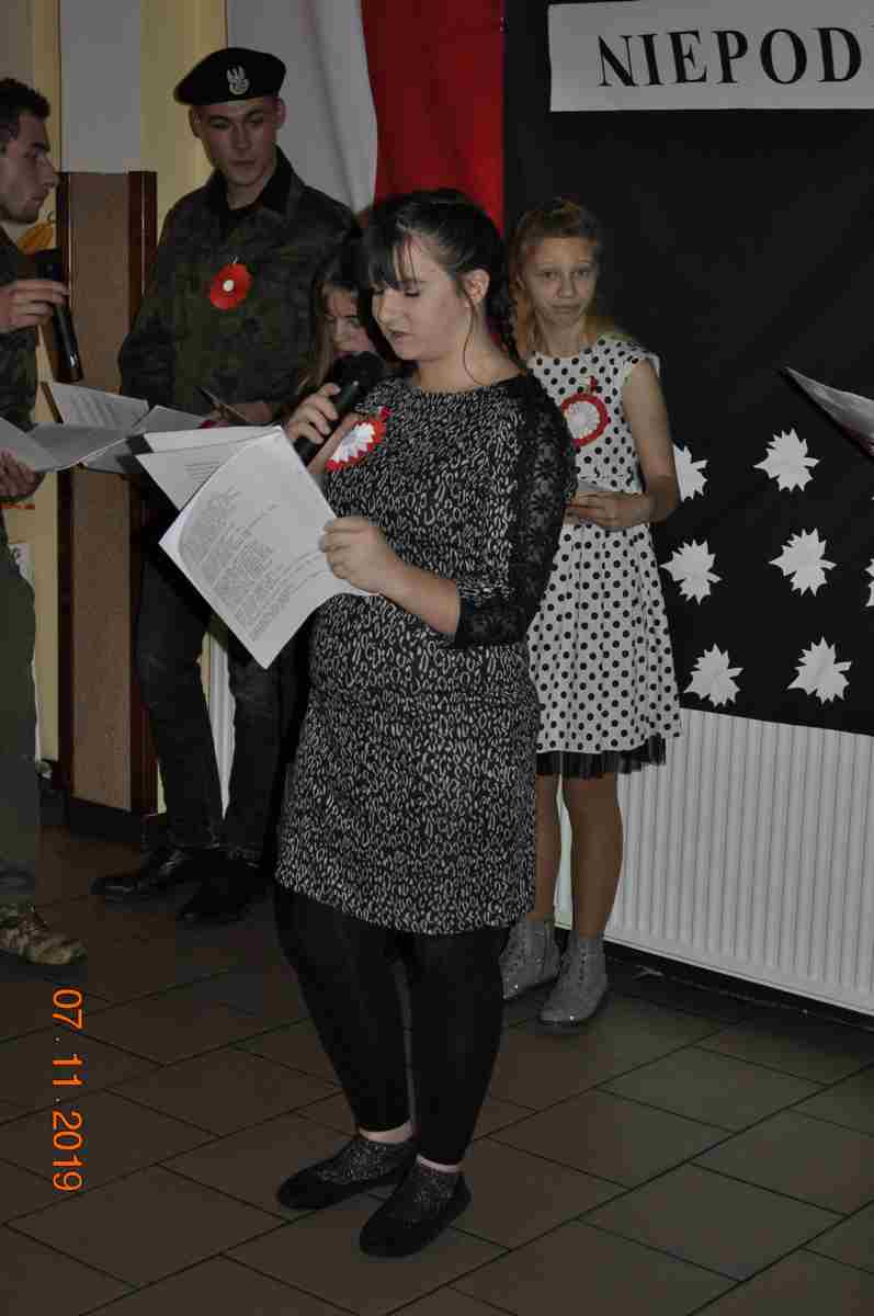 7.XI.2019r. w internacie odbyła się uroczysta wieczornica z okazji Święta Niepodległości. Coroczne obchody rocznicy Odzyskania Niepodległości mają na celu wspieranie postaw patriotycznych młodego pokolenia, wzbudzanie zainteresowania tożsamością narodową oraz pielęgnowanie kulturowego dziedzictwa kraju, popularyzowanie wiedzy o symbolach narodowych.