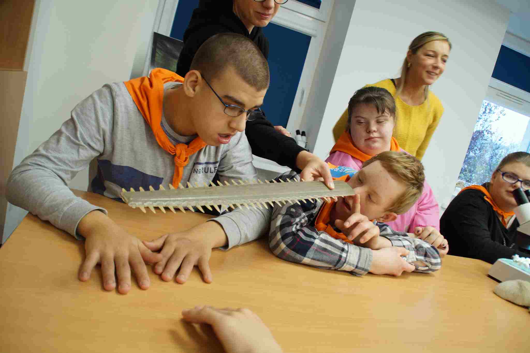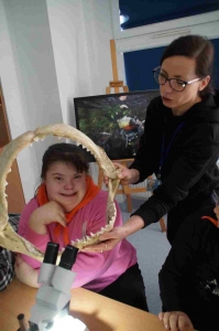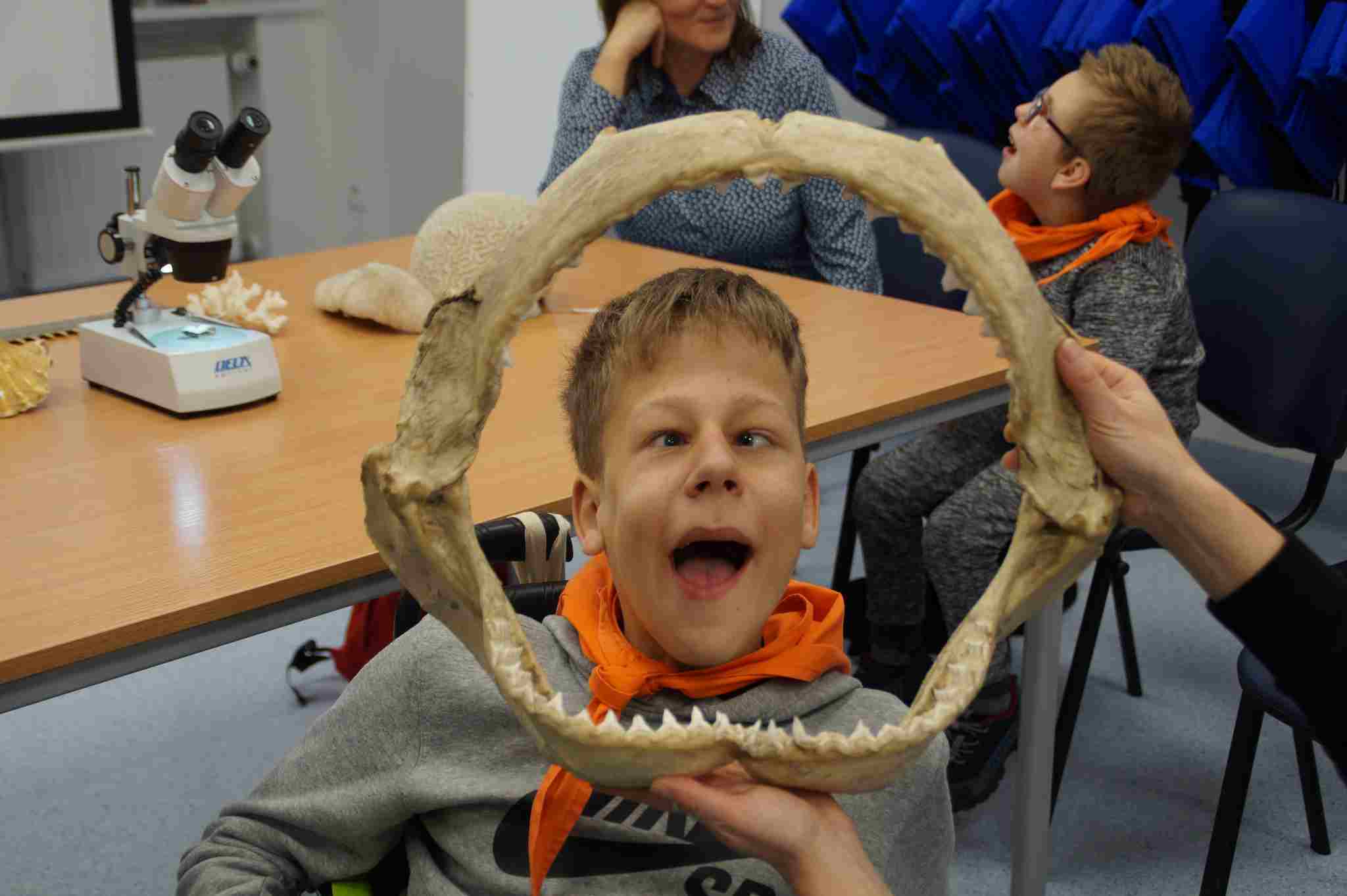 Braliśmy też udział w wyjątkowych warsztatach na temat rafy koralowej, która zachwyciła nas paletą barw i bogactwem kształtów swoich mieszkańców – intrygujących bezkręgowców morskich jak: strzykwy, rozgwiazdy czy jeżowce oraz ryb rafowych –skrzydlic, muren, błazenków, pławikoników i wielu, wielu innych. Obserwowaliśmy pod mikroskopem strukturę koralowca. Mogliśmy zobaczyć prawdziwą szczękę rekina i bawiliśmy się w budowanie rafy koralowej. Wycieczka była bardzo udana – była interesująca i pouczająca. Wszystkich zachęcamy do odwiedzin w gdyńskim Akwarium 🙂