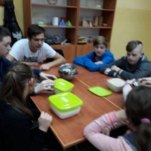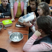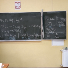 Uczniowie klasy 7 a SP (Klub „ Rozsądnych Jadłożerców) uczestniczyli w lekcji pt: ”Ważenie produktów oraz zamiana jednostek masy”. Uczniowie podczas zajęć, uczyli się odmierzać takie produkty jak mąka, cukier, ryż według poleceń nauczyciela p. M. Barzowskiej. Dodatkowym zadaniem była zamiana jednostek masy – dekagramów na gramy, kilogramów na dekagramy itp. Uczniowie wykazywali duże zaangażowanie i stwierdzili, że podczas praktycznych lekcji szybciej przyswajają wiedzę.