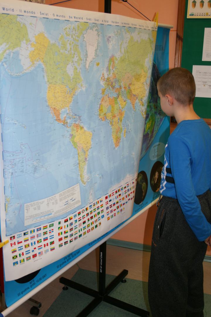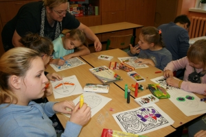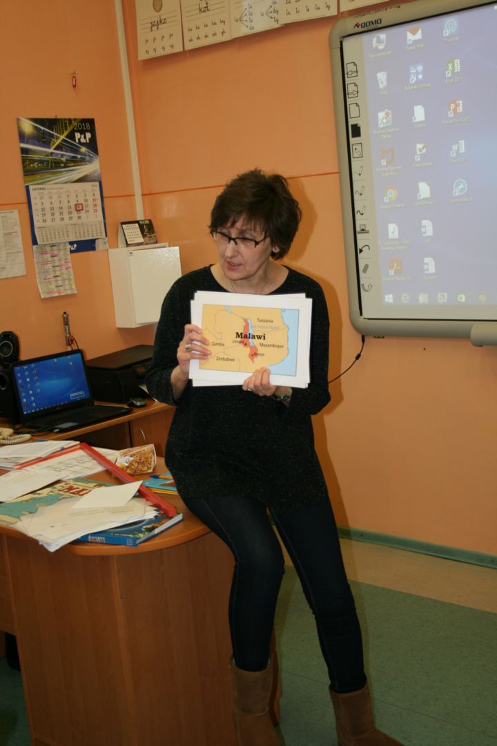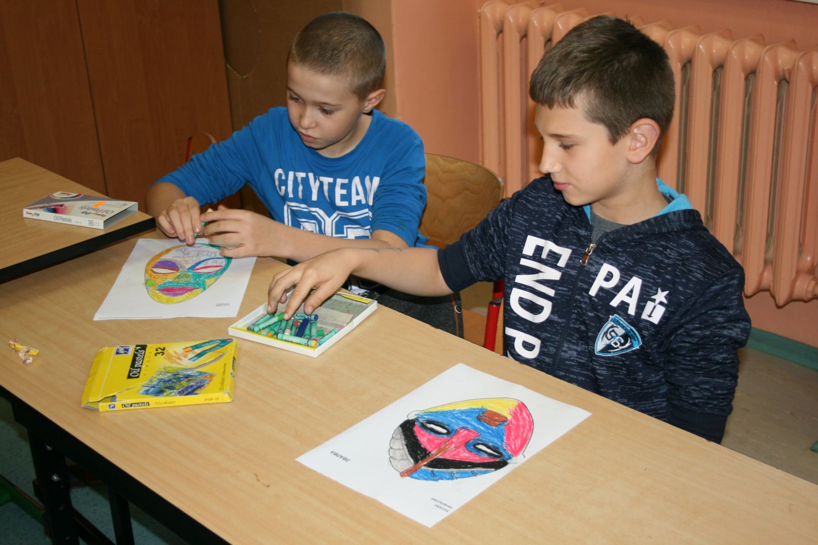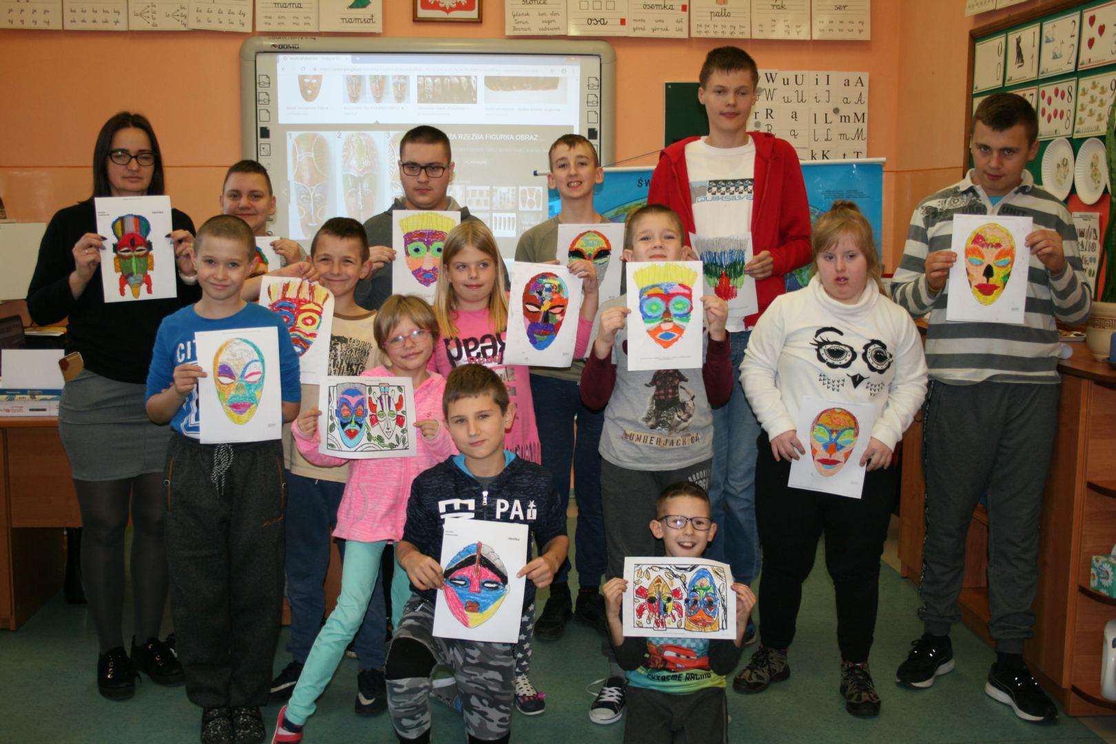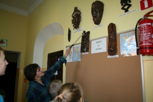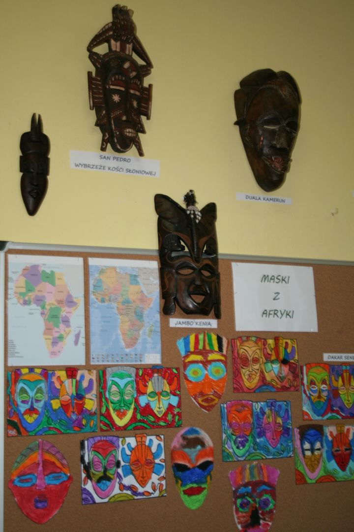 W ramach powyższych zajęć kontynuowano, realizowane od poprzedniego roku szkolnego, zagadnienia dotyczące poznania warunków życia mieszkańców Afryki, fauny i flory kontynentu afrykańskiego oraz kultury afrykańskiej. Tym razem dzieci miały okazję obejrzeć, dotknąć, a także poznać historię masek afrykańskich (m. in. dzięki uprzejmości p. Joanny Almakiewicz, która użyczyła nam oryginalnych masek z Afryki). Powtórzyliśmy też wiadomości o empatii, altruizmie i filantropii, posiłkując się materiałami z poprzednich zajęć oraz filmem o dzieciach, zamieszkujących jeden z najuboższych państw Afryki – Malawi.