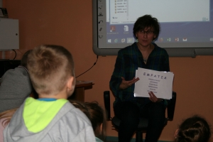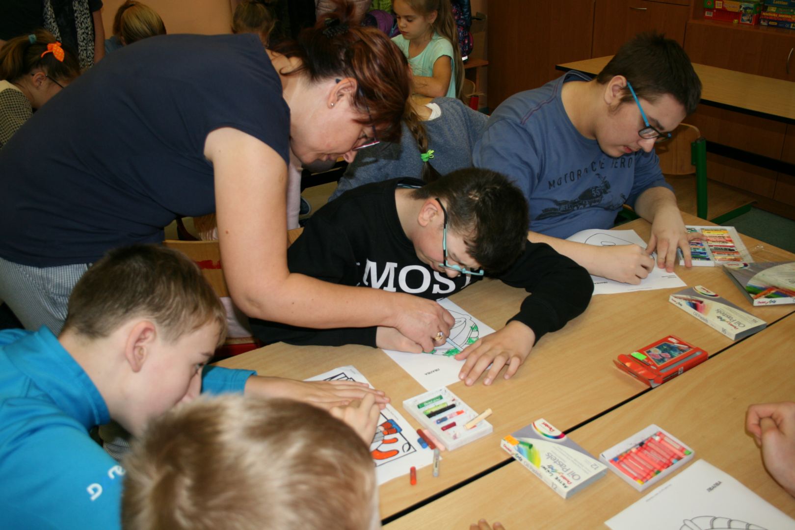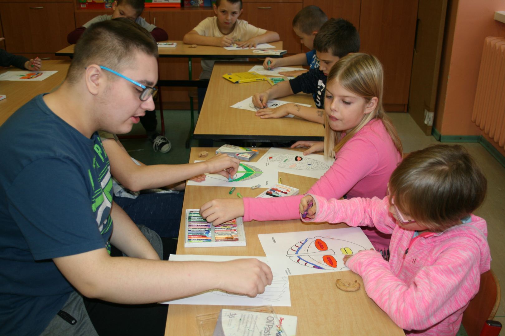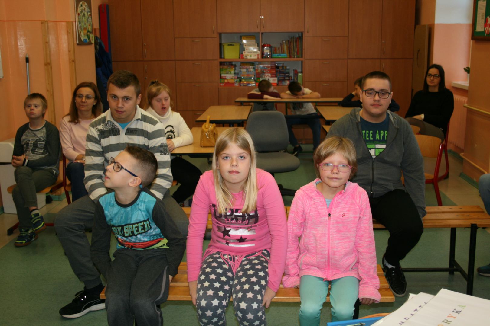 W listopadzie bieżącego 2018 r. miały miejsce dwa spotkania, zainicjowane w ramach realizacji programu „Wiem. Czuję… Pomagam!”. Pierwsze spotkanie odbyło się 8 listopada; wzięli w nim udział uczniowie klasy VII c z wychowawczynią p. Krystyną Kozłowską (inicjatorka spotkań), uczniowie klasy V c z wychowawczynią p. Joanną Almakiewicz oraz uczniowie klasy II b z wychowawczynią p. Dorotą Jankuniec. Drugie spotkanie odbyło się 16 listopada; w tym spotkaniu udział wzięli uczniowie klasy VI/VII b z wychowawczynią p. Agnieszką Hajkowicz oraz uczniowie klasy III a z wychowawczynią p. Emilią Wójcik.