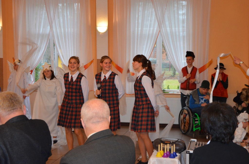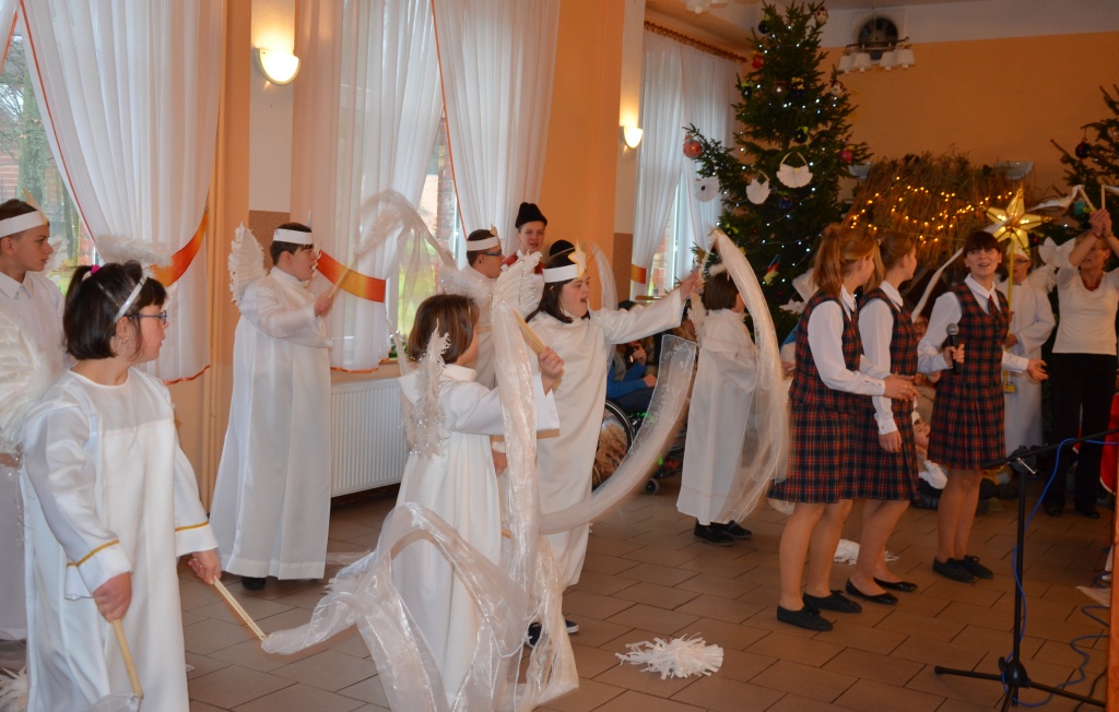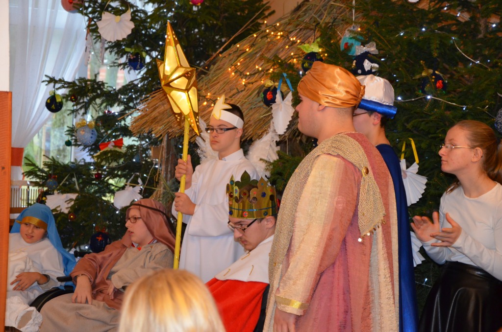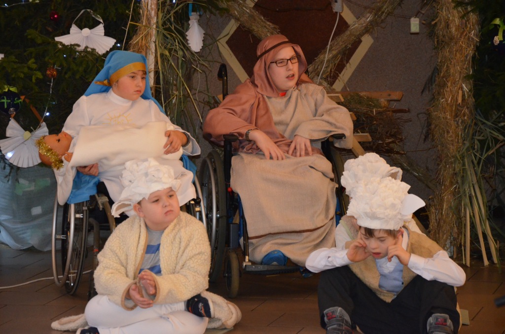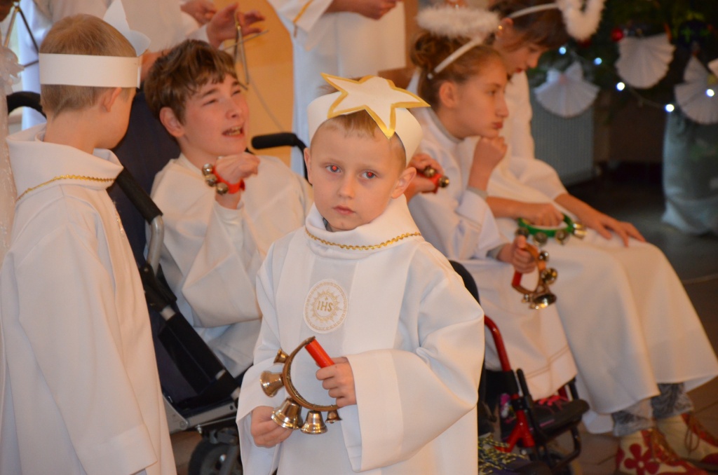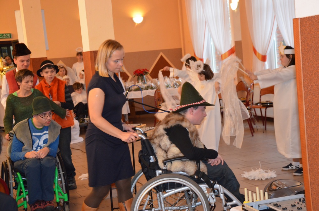- Boże Narodzenie – muz. E. Grieg wystąpili uczniowie zespołów edukacyjno terapeutycznych: Józef – Oliwer z gimnazjum, Maria – Dominika z kl.IV, Archanioł – Andrzej z gimnazjum, baranki – Michał, Dawid, Kacper, Marcin, Kamil, Dawid z kl. I-V z autyzmem