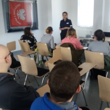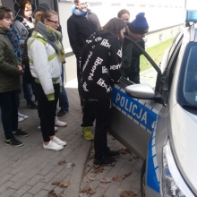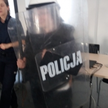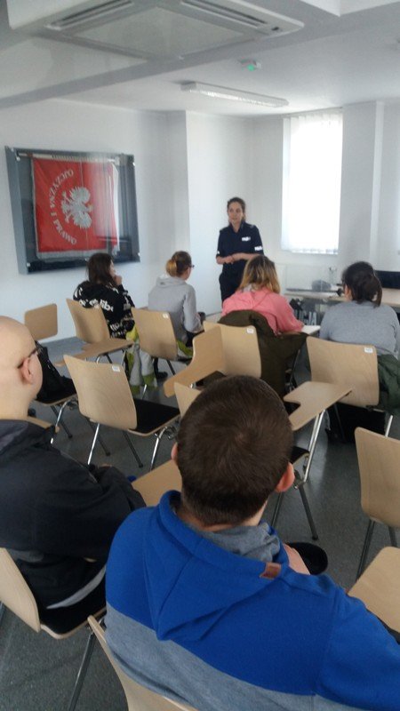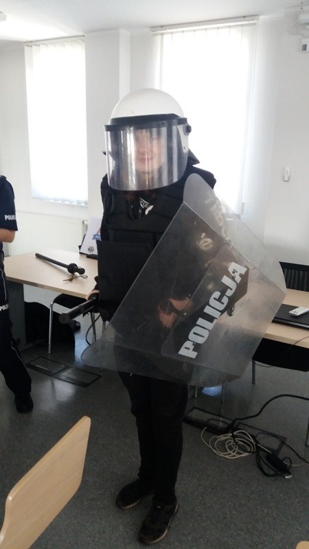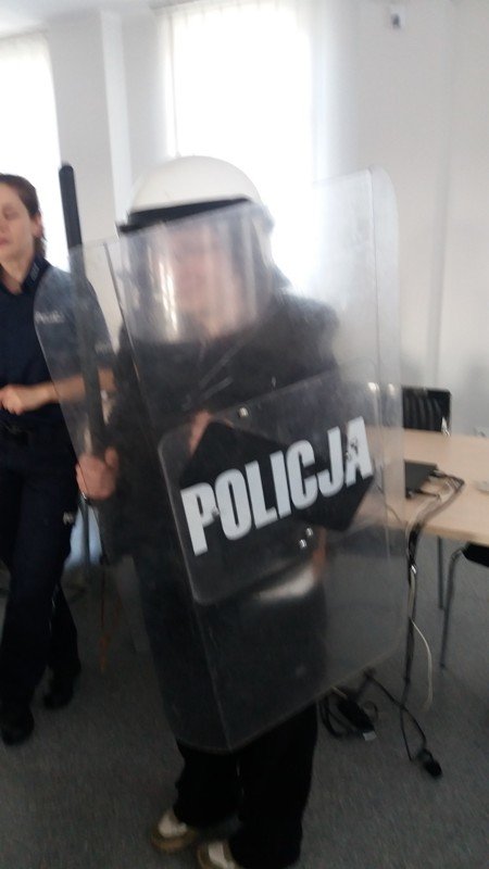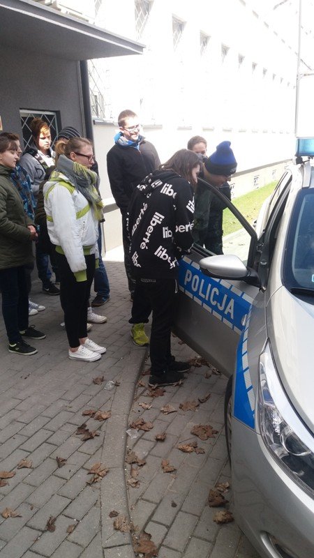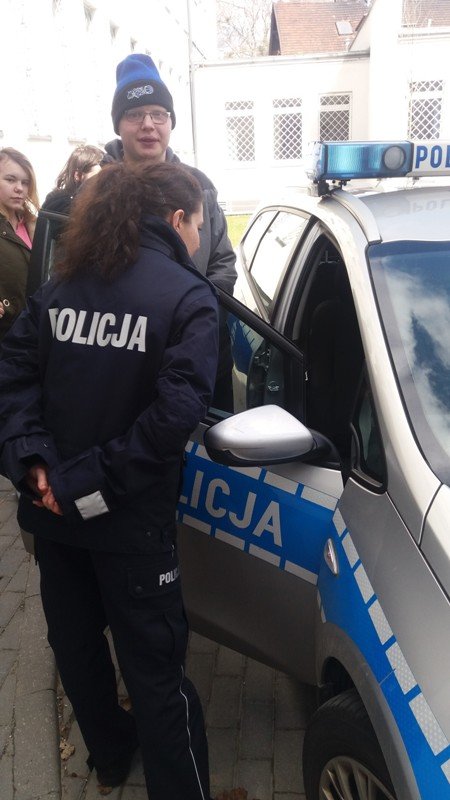 W piątek 6 kwietnia uczniowie klasa 2b Gimnazjum nr 1 oraz I/IIb SSPdP złożyli wizytę w Komendzie Powiatowej Policji w Wejherowie. Komendę od wewnątrz pokazały nam dwie panie policjantki: pani Aneta i pani Karolina. Na początku mogliśmy obejrzeć radiowozy skupiając się na elementach ich wyposażenia. Uczniowie z zaciekawieniem zwiedzili: boksy i wybiegi dla policyjnych psów, których policjanci w Wejherowie aktualnie mają dwa. Dowiedzieliśmy się jak się zachować w sytuacji, gdy spotkamy na swej drodze psa bez właściciela. W budynku policji zobaczyliśmy pomieszczenia aresztu tymczasowego, pomieszczenia ze sprzętem. Sporo czasu panie przeznaczyły na prezentacją stroju policyjnego, min. elementów służących podczas zabezpieczania imprez masowych, głównie meczów piłkarskich. Uczestnicy spotkania mogli przymierzyć kaski, kamizelki, obronne tarcze. Na zakończenie panie przekazały nam wiele cennych informacji dotyczących bezpieczeństwa na co dzień, na drogach miast i wsi, bezpieczeństwa w sieci. Wszyscy wróciliśmy niezwykle zadowoleni. Serdecznie dziękujemy naszym Przewodniczkom za czas spędzony z mani, niezwykle przyjazną atmosferę i całe mnóstwo niezbędnych w życiu informacji.