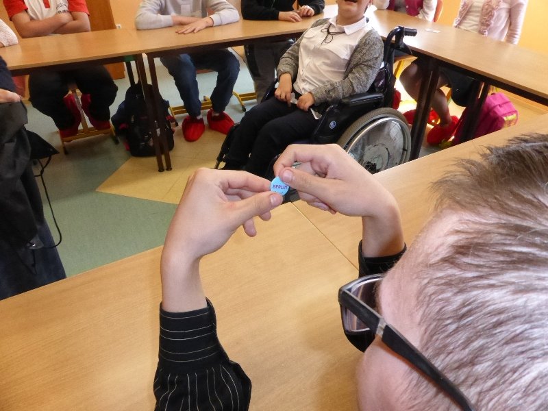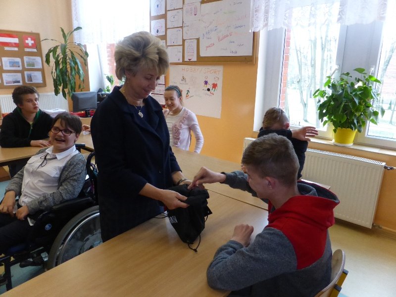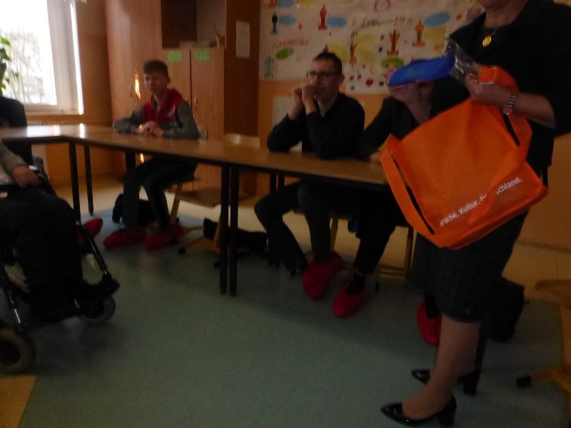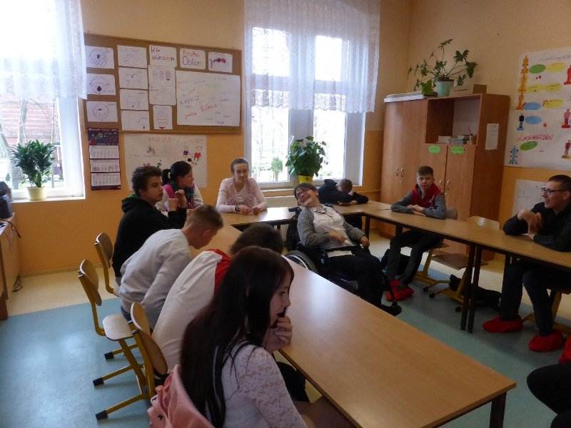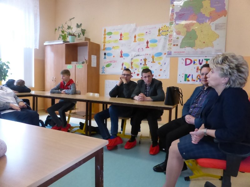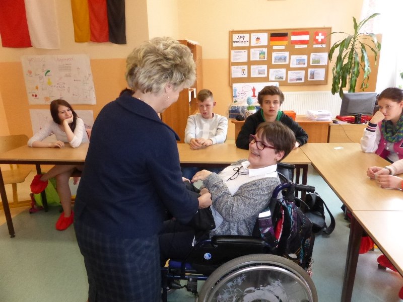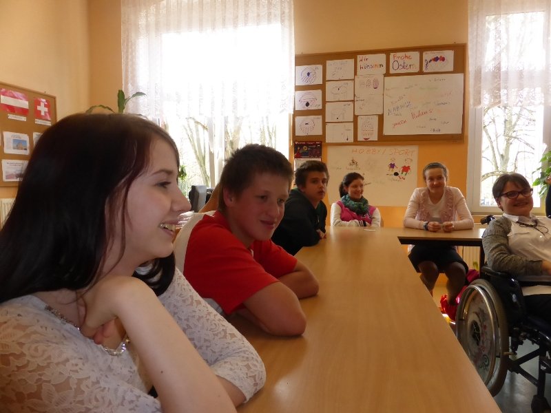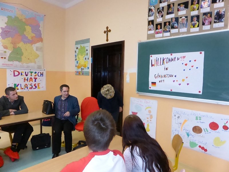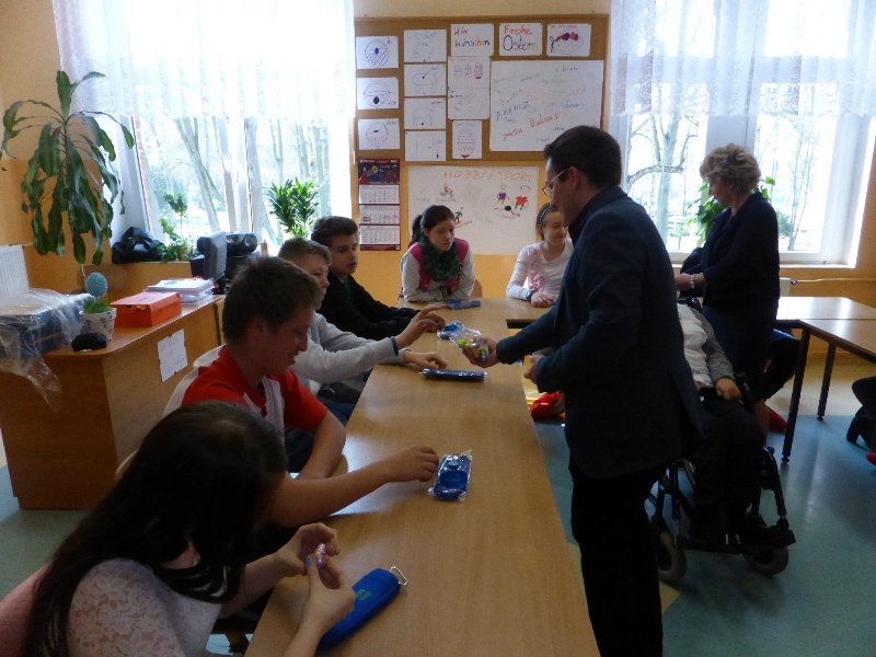 W poniedziałek 10 kwietnia gościliśmy w naszym gimnazjum przedstawicieli Goethe- Institut z Warszawy. Obecni byli pani Ewa Ostaszewska i pan Andrzej Pomianowski. Niestety nie udało się nam zakwalifikować do ścisłego finału konkursu, niemniej jednak członkowie komisji konkursowej, będący pod wrażeniem wysiłku i wkładu naszej pracy w zmiany aranżacji sali języka niemieckiego, osobiście chcieli poznać naszą grupę projektową oraz wręczyć uczestnikom drobne upominki. Spotkanie z młodzieżą odbyło się oczywiście w sali języka niemieckiego nr 107 w budynku ZSZ nr 5. Uczniowie opowiadali o projekcie, w jaki sposób przebiegała jego realizacja, demonstrowali swoje prace, odpowiadali na wiele pytań komisji. Niedługo otrzymamy drogą pocztową dyplomy oraz list z podziękowaniami, który zostanie odczytany na apelu szkolnym.