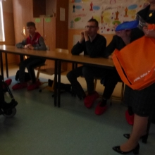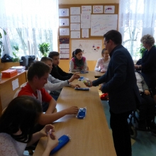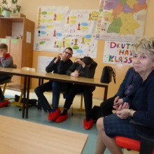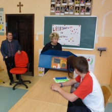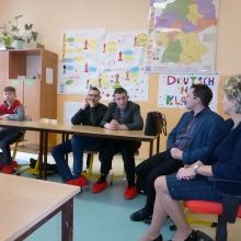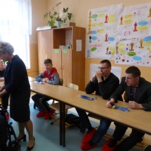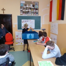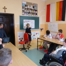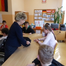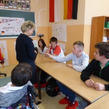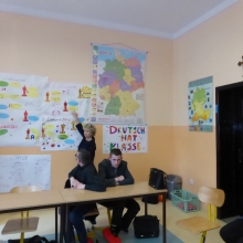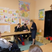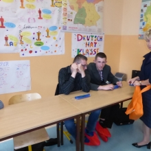 W poniedziałek 10 kwietnia gościliśmy w naszym gimnazjum przedstawicieli Goethe- Institut z Warszawy. Obecni byli pani Ewa Ostaszewska i pan Andrzej Pomianowski. Niestety nie udało się nam zakwalifikować do ścisłego finału konkursu, niemniej jednak członkowie komisji konkursowej, będący pod wrażeniem wysiłku i wkładu naszej pracy w zmiany aranżacji sali języka niemieckiego, osobiście chcieli poznać naszą grupę projektową oraz wręczyć uczestnikom drobne upominki. Spotkanie z młodzieżą odbyło się oczywiście w sali języka niemieckiego nr 107 w budynku ZSZ nr 5. Uczniowie opowiadali o projekcie, w jaki sposób przebiegała jego realizacja, demonstrowali swoje prace, odpowiadali na wiele pytań komisji. Niedługo otrzymamy drogą pocztową dyplomy oraz list z podziękowaniami, który zostanie odczytany na apelu szkolnym.