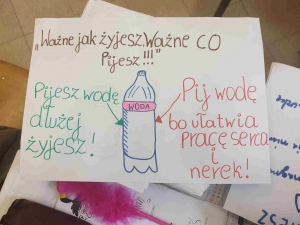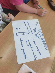 Przez ostatni miesiąc uczestnicy projektu Fit4healthylife przygotowywali w szkole prezentacje dotyczące wartości odżywczych wody. Podczas spotkań projektowych uczniowie wykonywali plakaty, gazetki ścienne oraz prezentację multimedialna, a wszystko po to by zwrócić uwagę rówieśników na korzyści płynące z picia wody.